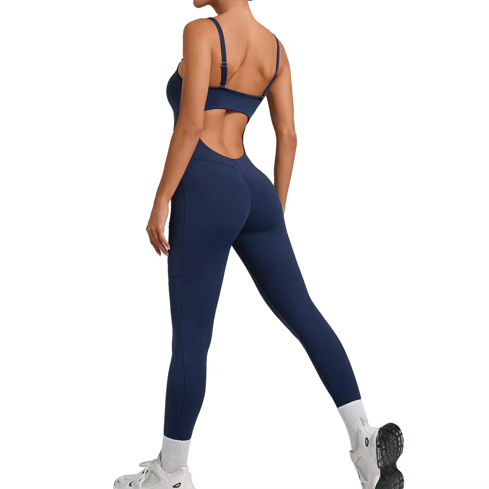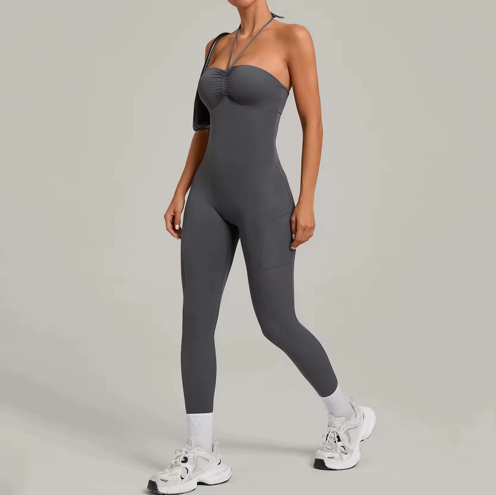 Women's Halter Yoga Sports Bodysuit Spliced Running and Fitness Sportswear Workout Gym Jumpsuit