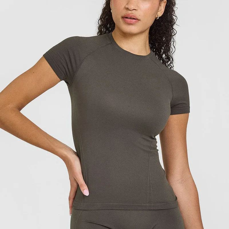 YISHENHON 2026 New Design Quick Drying Casual Tight Short Sleeve Yoga Wear Women High Intensity Running Sports Fitness T-shirt