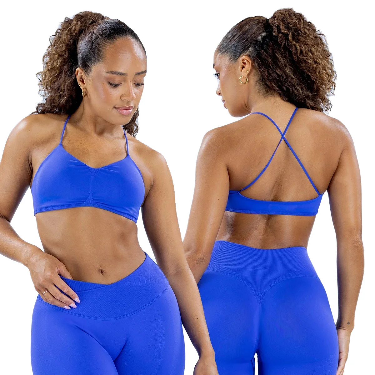 New Popular Women's Plus Size Lightweight High Elastic Shockproof Cross Back Yoga Halter Tops Seamless Backless Gym Sport Bra