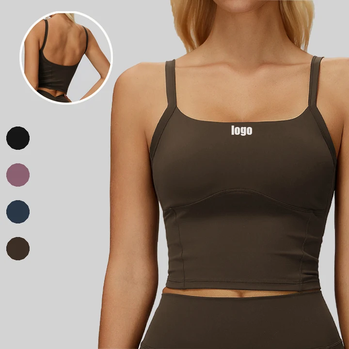 Custom logo Outdoor Running tank Top with Built in Bra Deep U Back Womens Sports tank Top Slim Fit Yoga tank Top