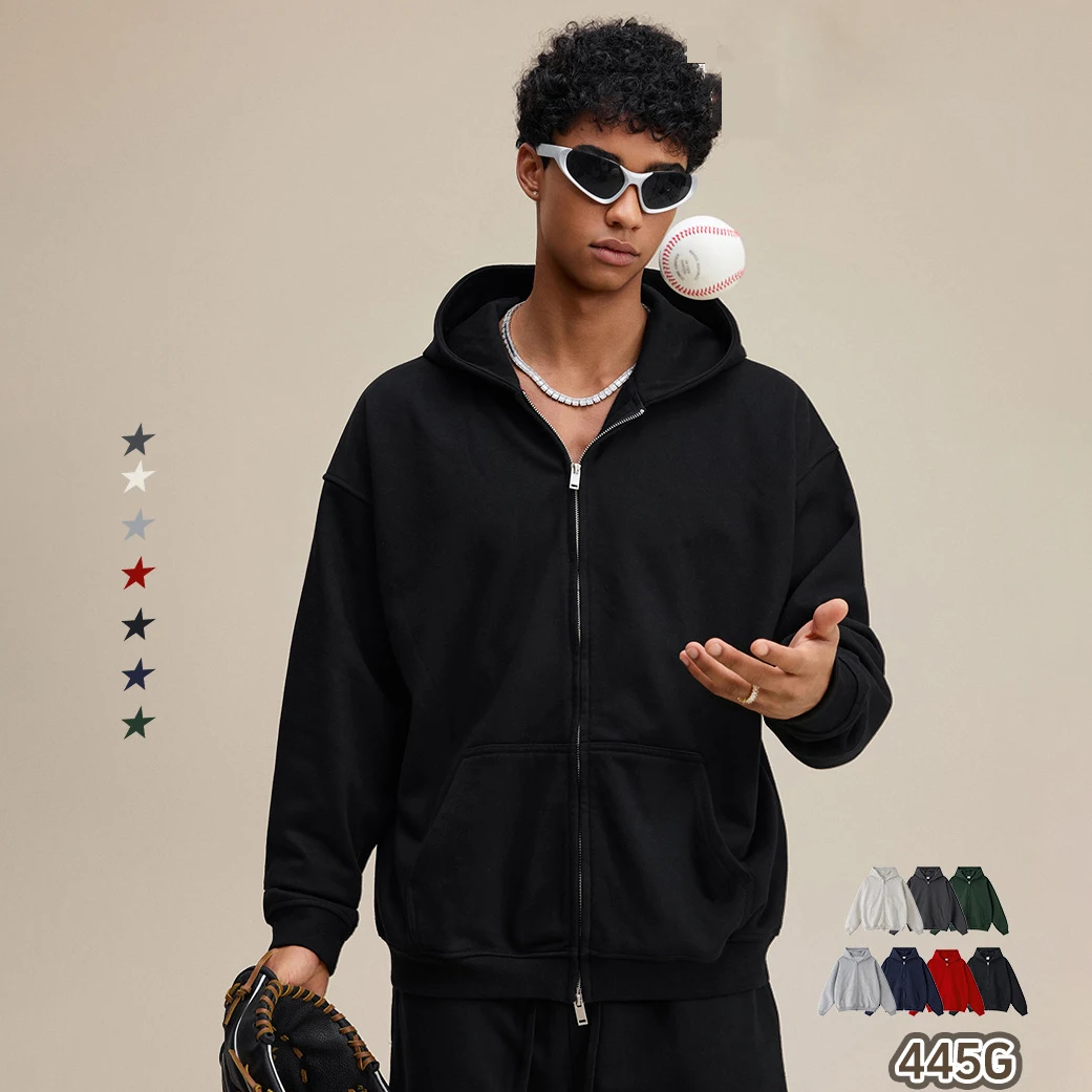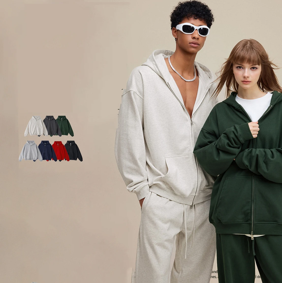 Manufacturers Unisex Solid Color 445 GSM Heavyweight Double Zipper Fleece Hoodie Oversized Hoodie