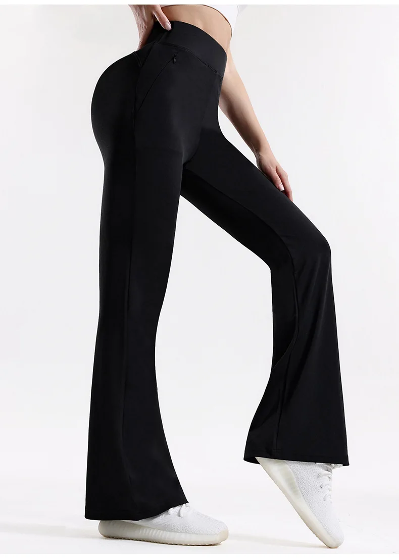 YISHENHON Recyclable Fabric Quick Dry Yoga V Waist Gym Leggings Running Workout Wide Leg Pants Flare Woman Sport Pants