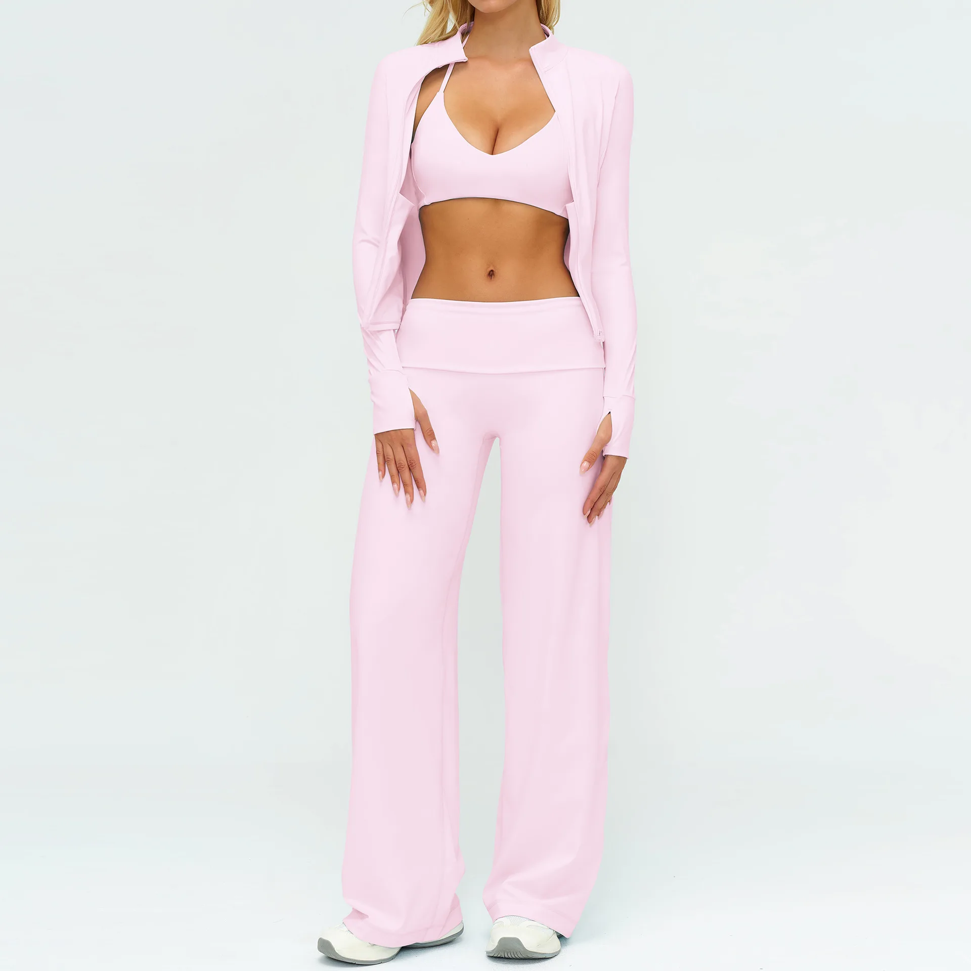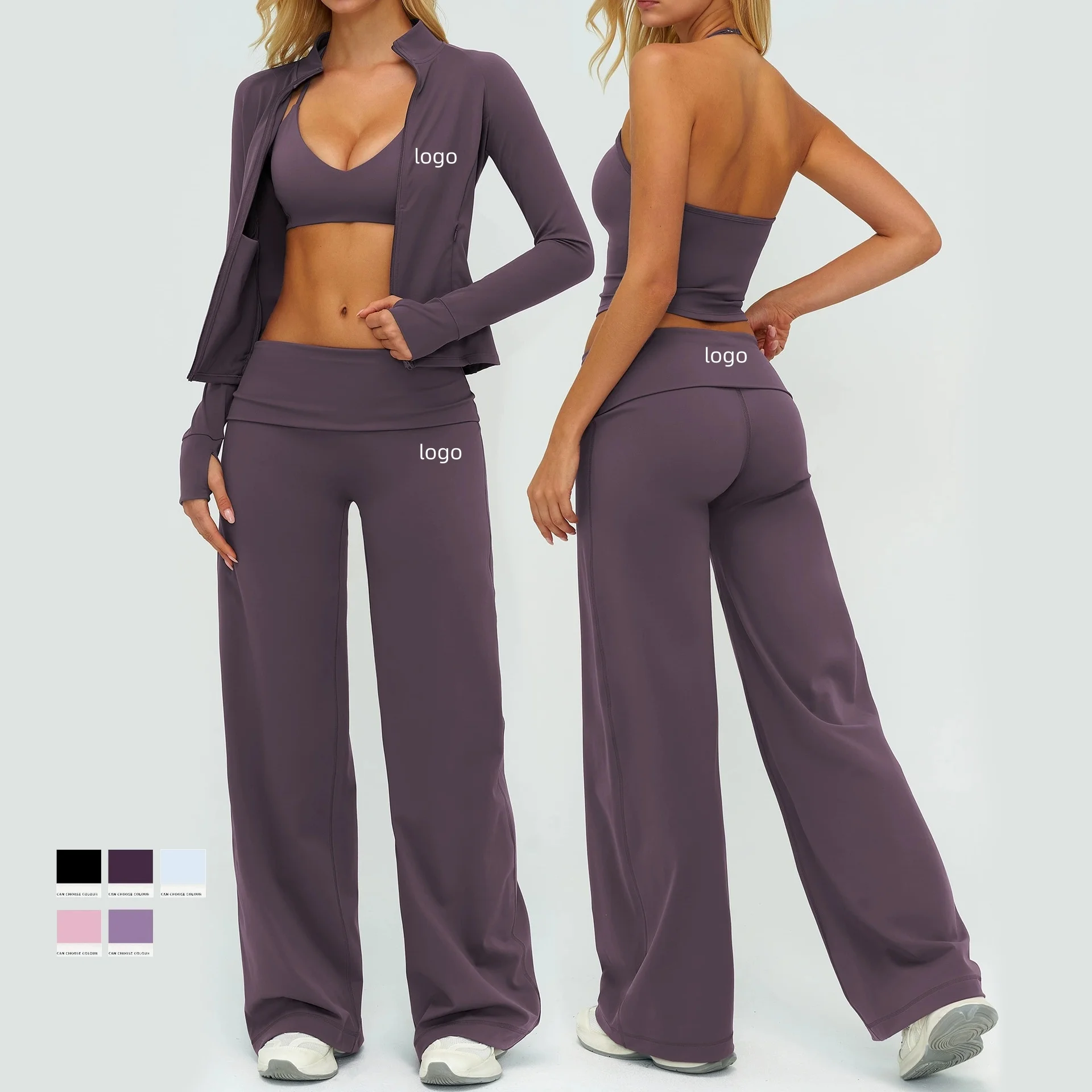 YISHENHON Recyclable Fabric Quick Dry Yoga V Waist Gym Leggings Running Workout Wide Leg Pants Flare Woman Sport Pants