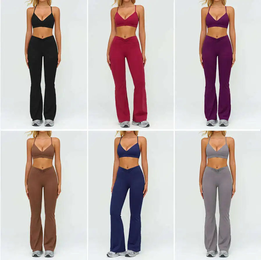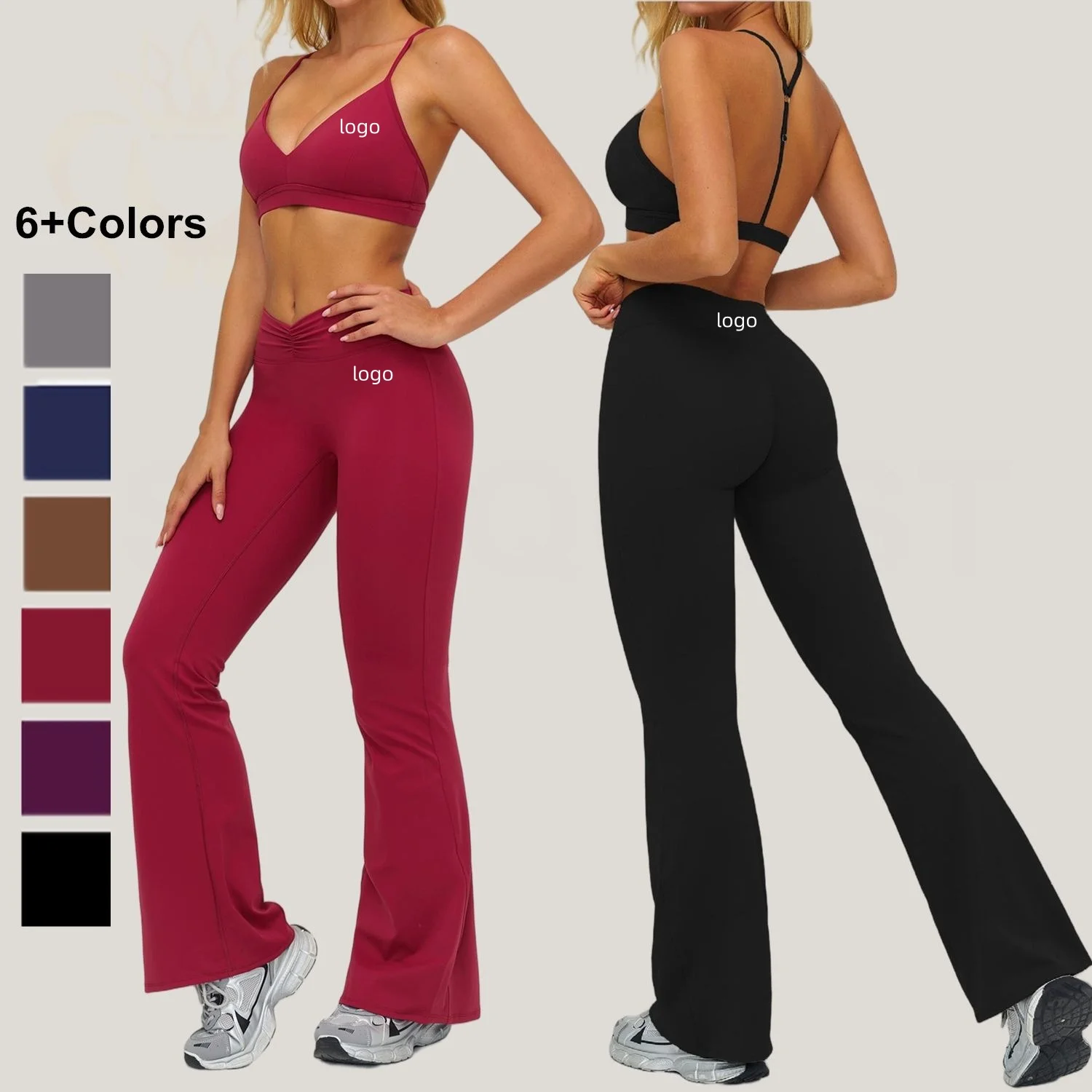 Women Gym Wear Sportswear Manufacturer Gym Fitness Sets Activewear Workout Fitness 2 PCS Soft Bra Flared Leggings Suit