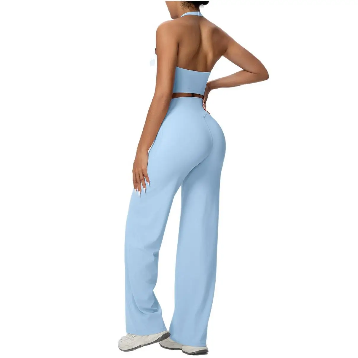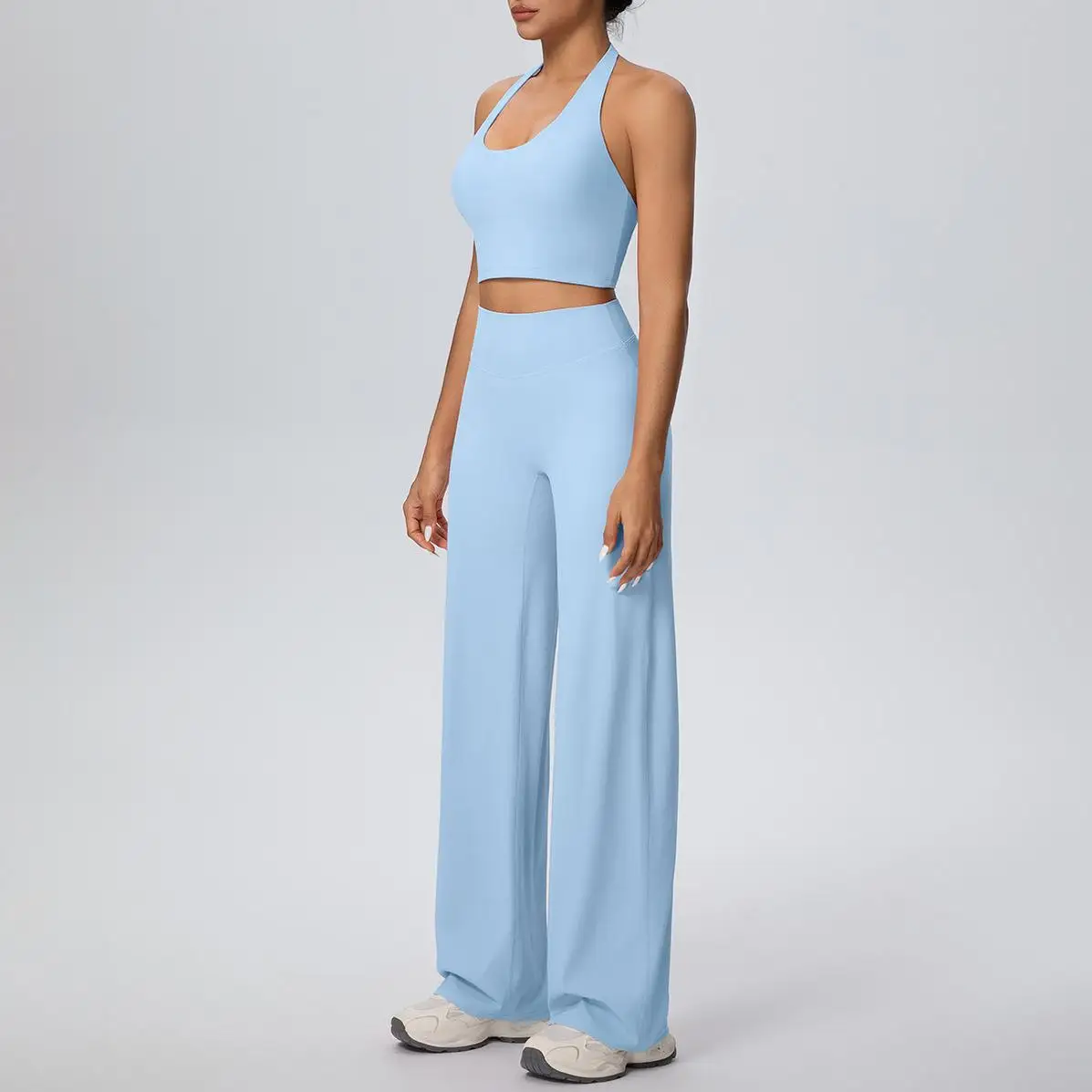 YISHENHON Recyclable Fabric Quick Dry Yoga V Waist Gym Leggings Running Workout Wide Leg Pants Flare Woman Sport Pants