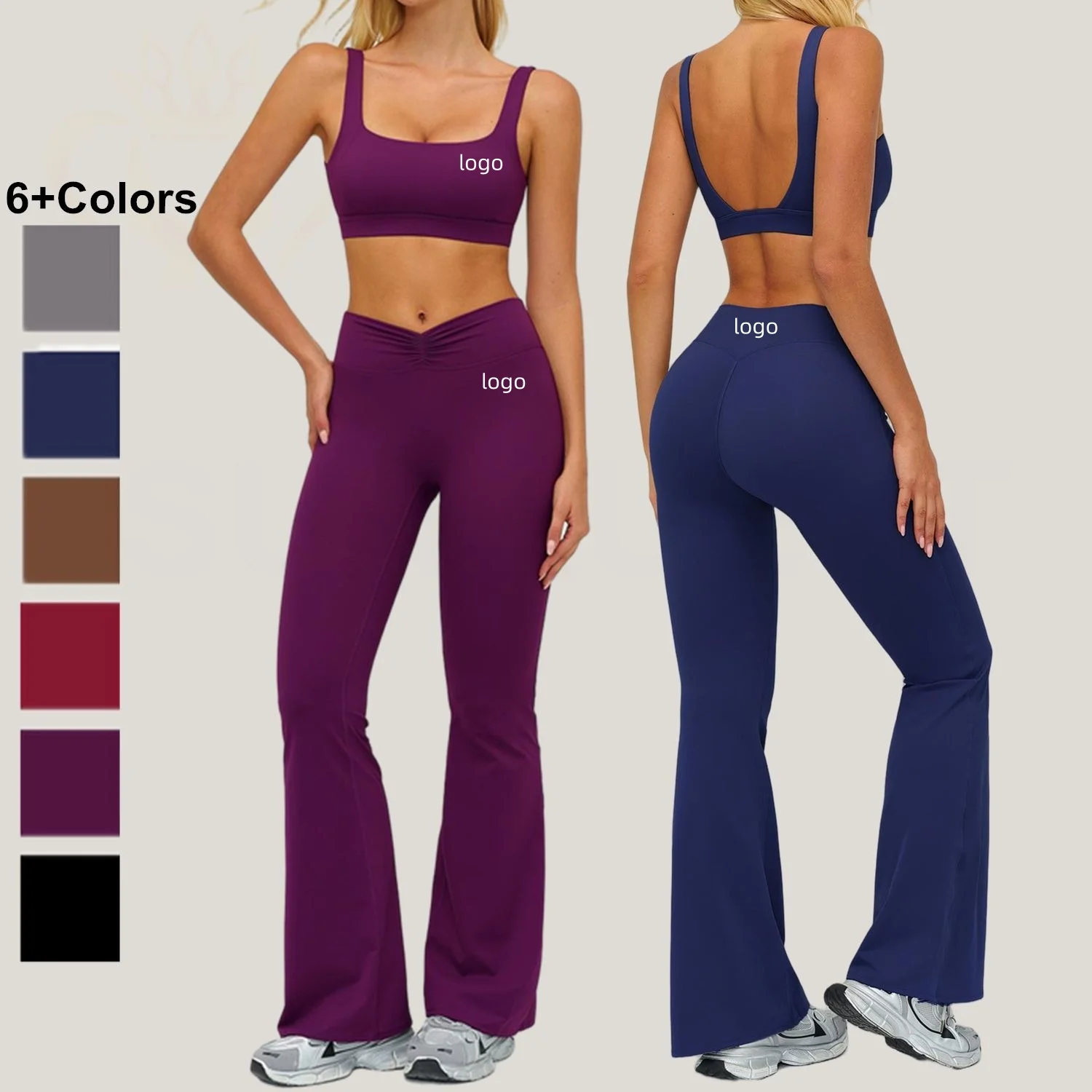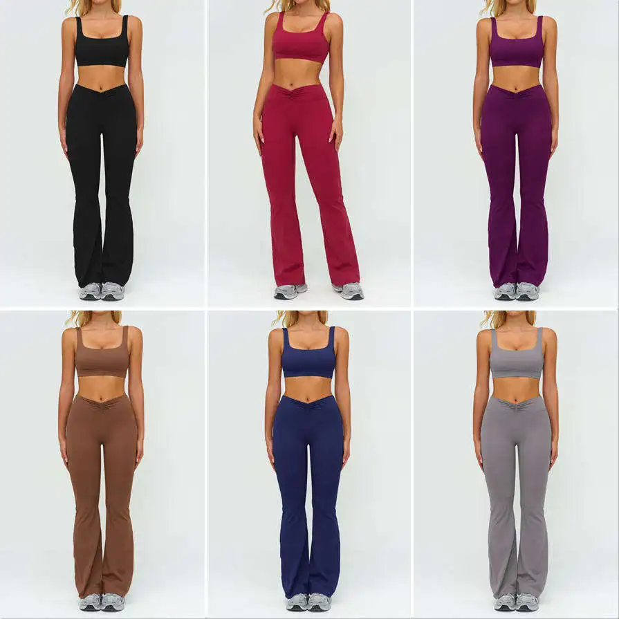 YISHENHON Recyclable Fabric Quick Dry Yoga V Waist Gym Leggings Running Workout Wide Leg Pants Flare Woman Sport Pants