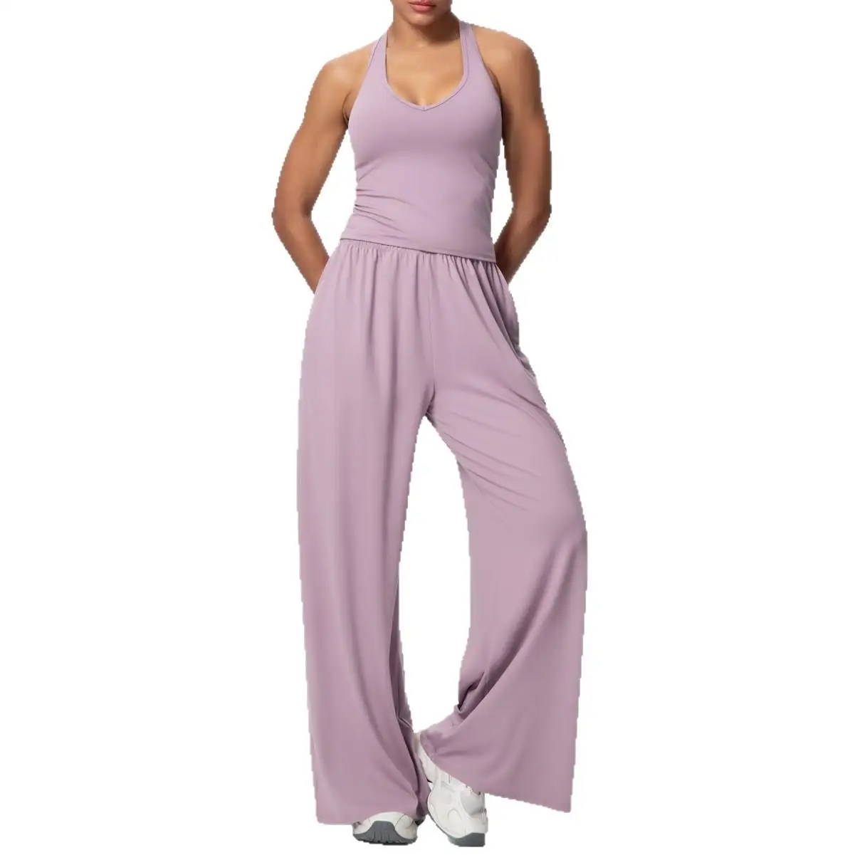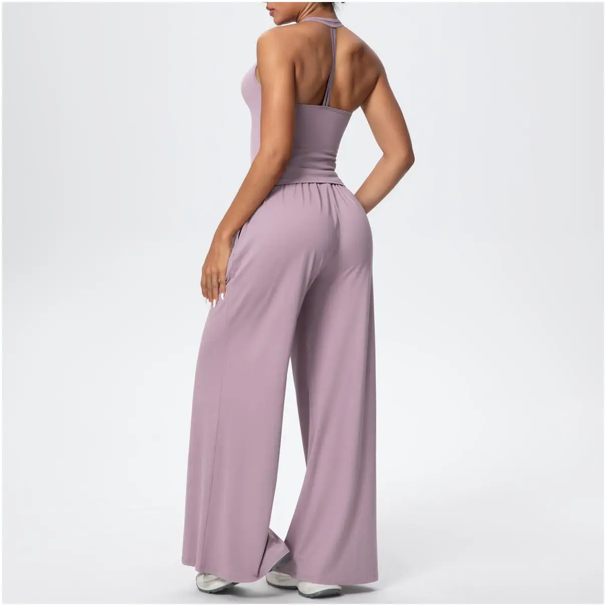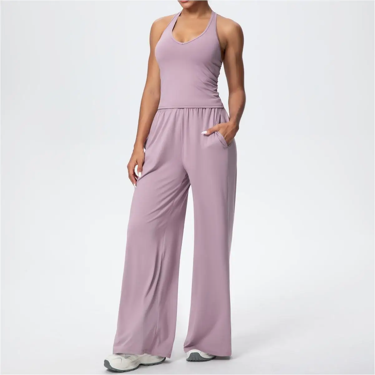 YISHENHON Recyclable Fabric Quick Dry Yoga V Waist Gym Leggings Running Workout Wide Leg Pants Flare Woman Sport Pants