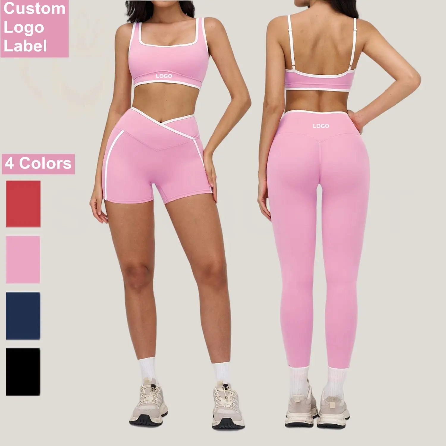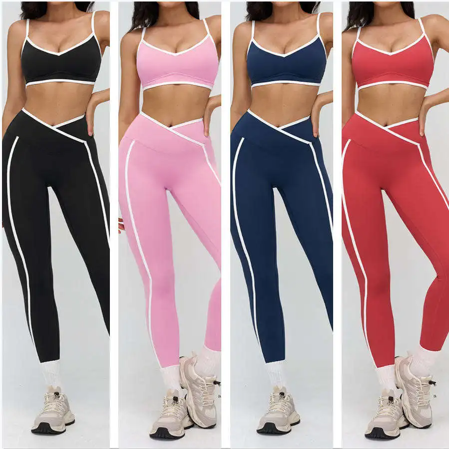 New Fashion High Impact Yoga Bra and Gym Leggings Set Custom logo High Waist Yoga Leggings Set for Women