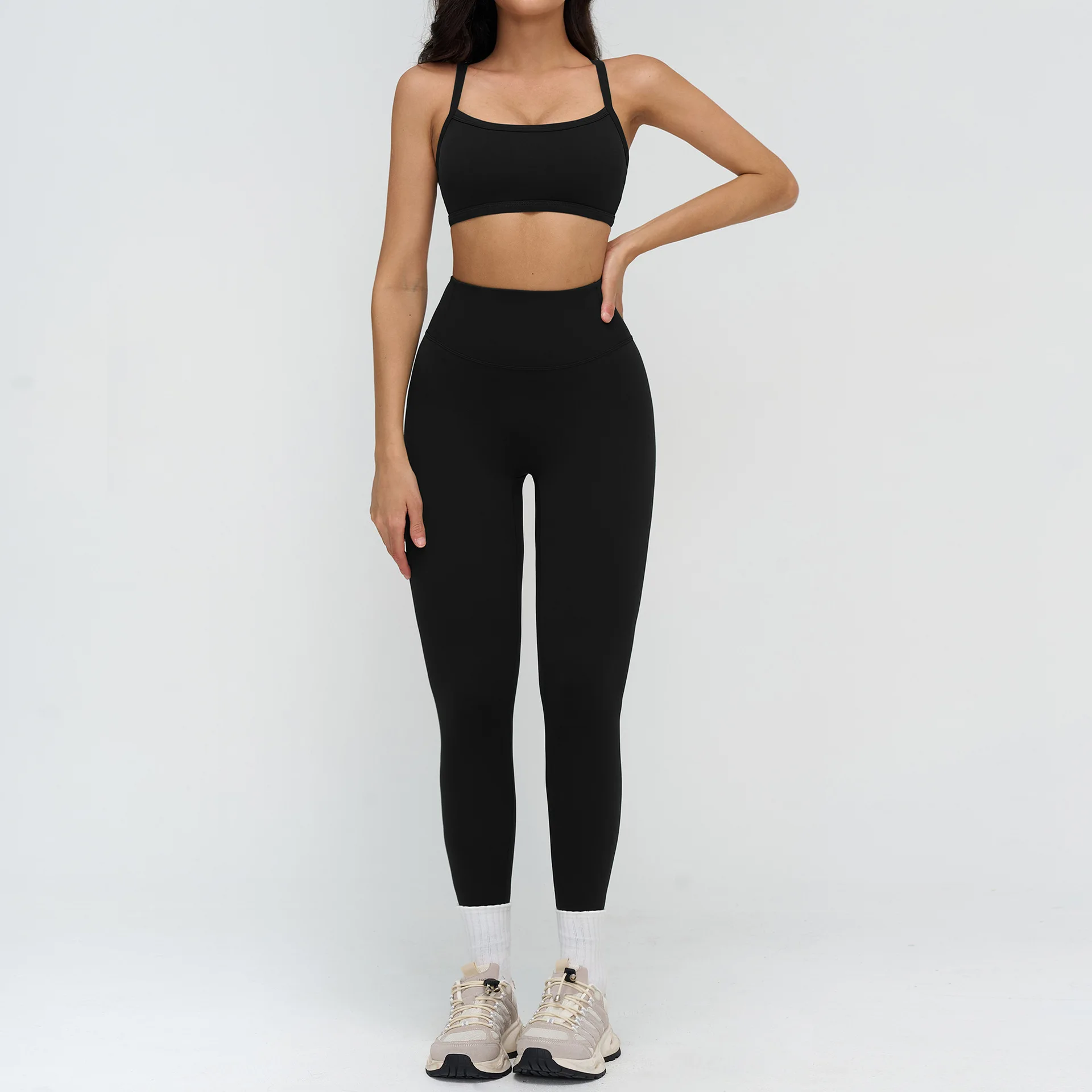 Wholesale Yoga High Waist Gym Leggings Fitness Sports Bra Workout 2 Piece Set Women