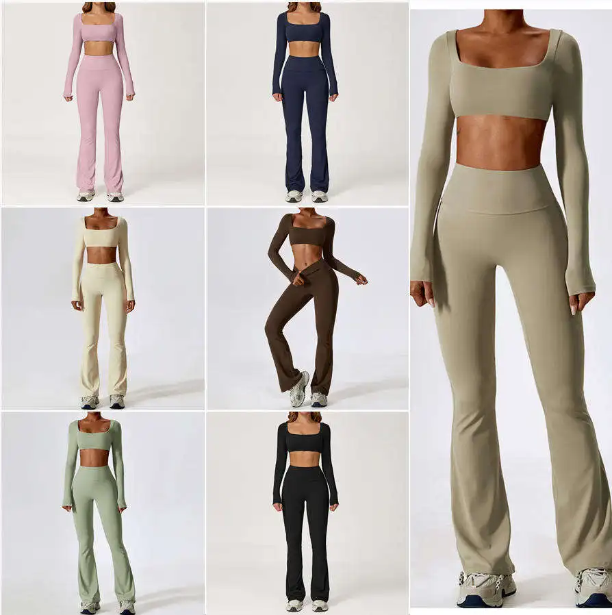 Custom Gym Wear Women Fitness Yoga Sets Tight Long Sleeve Tops Sportswear Butt Lift Yoga Leggings for Women Workout Sportswear