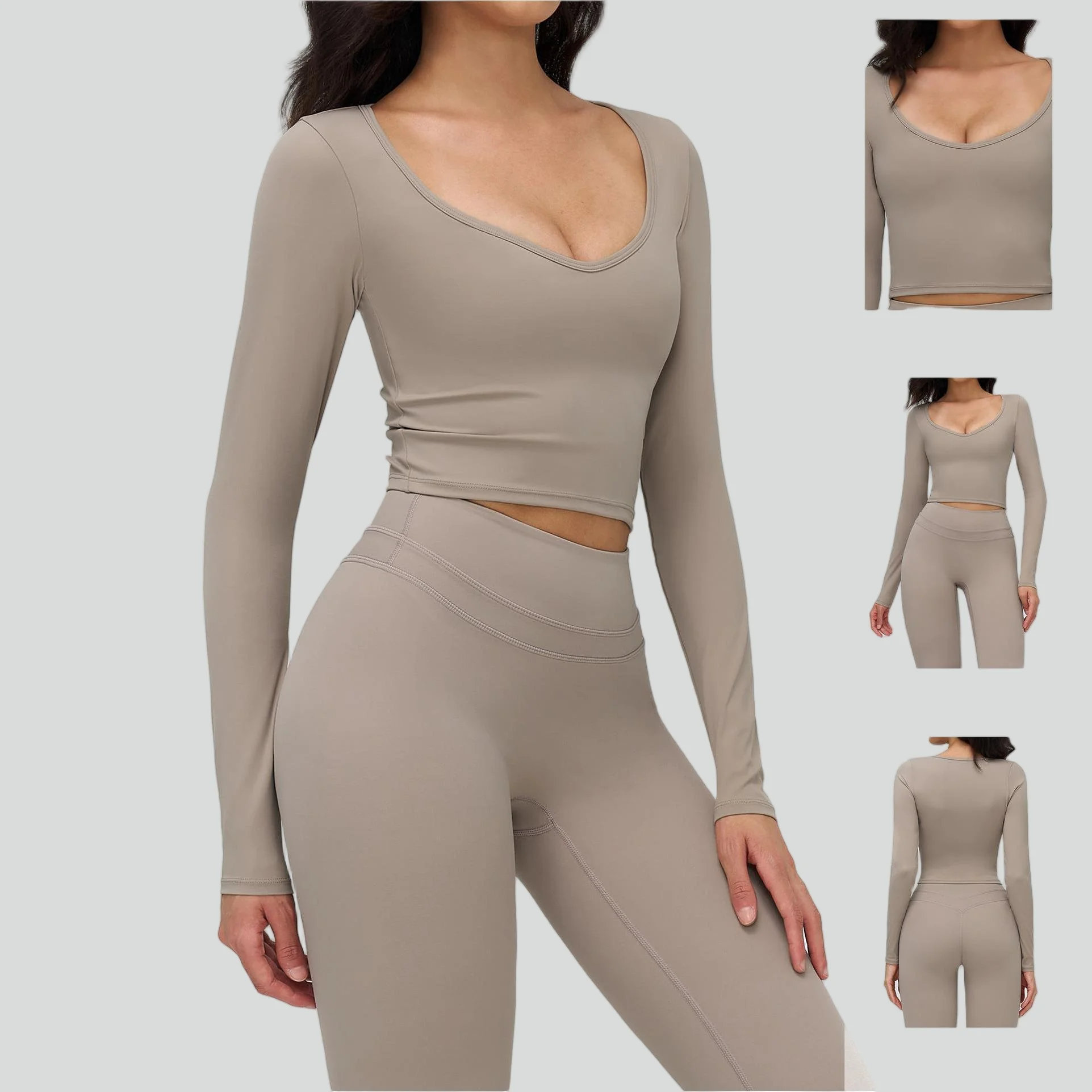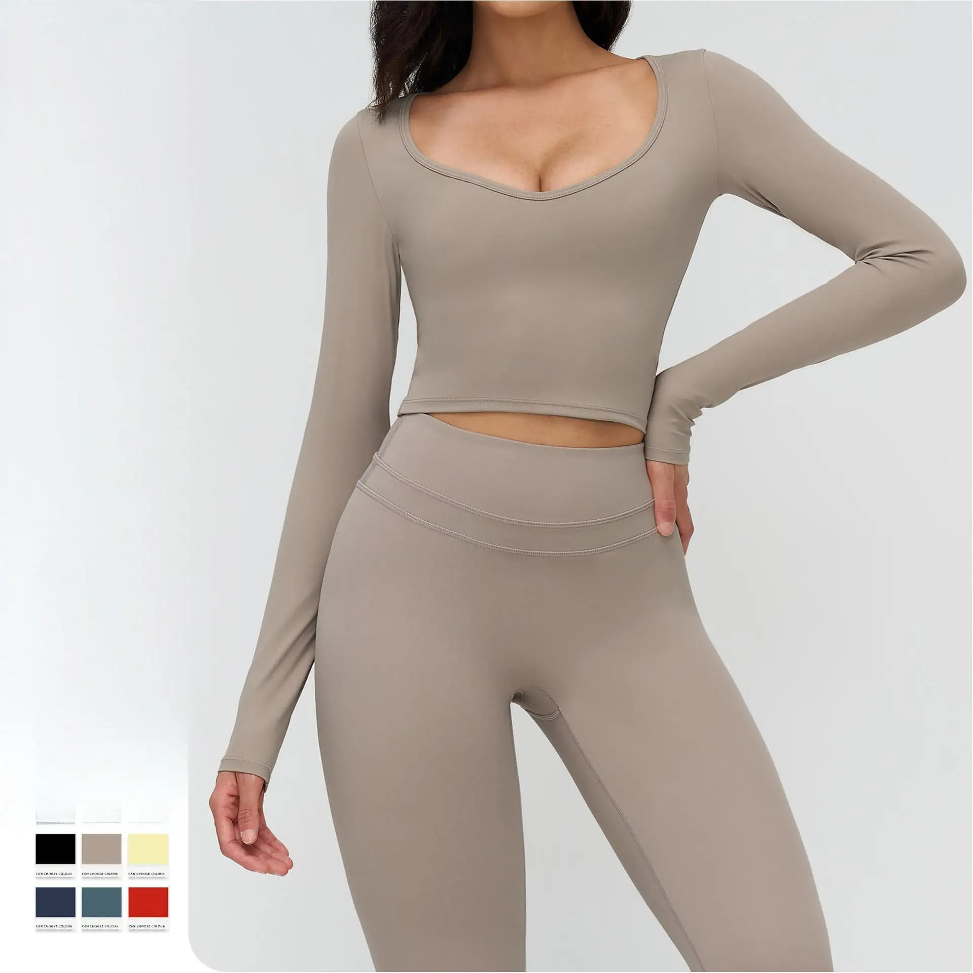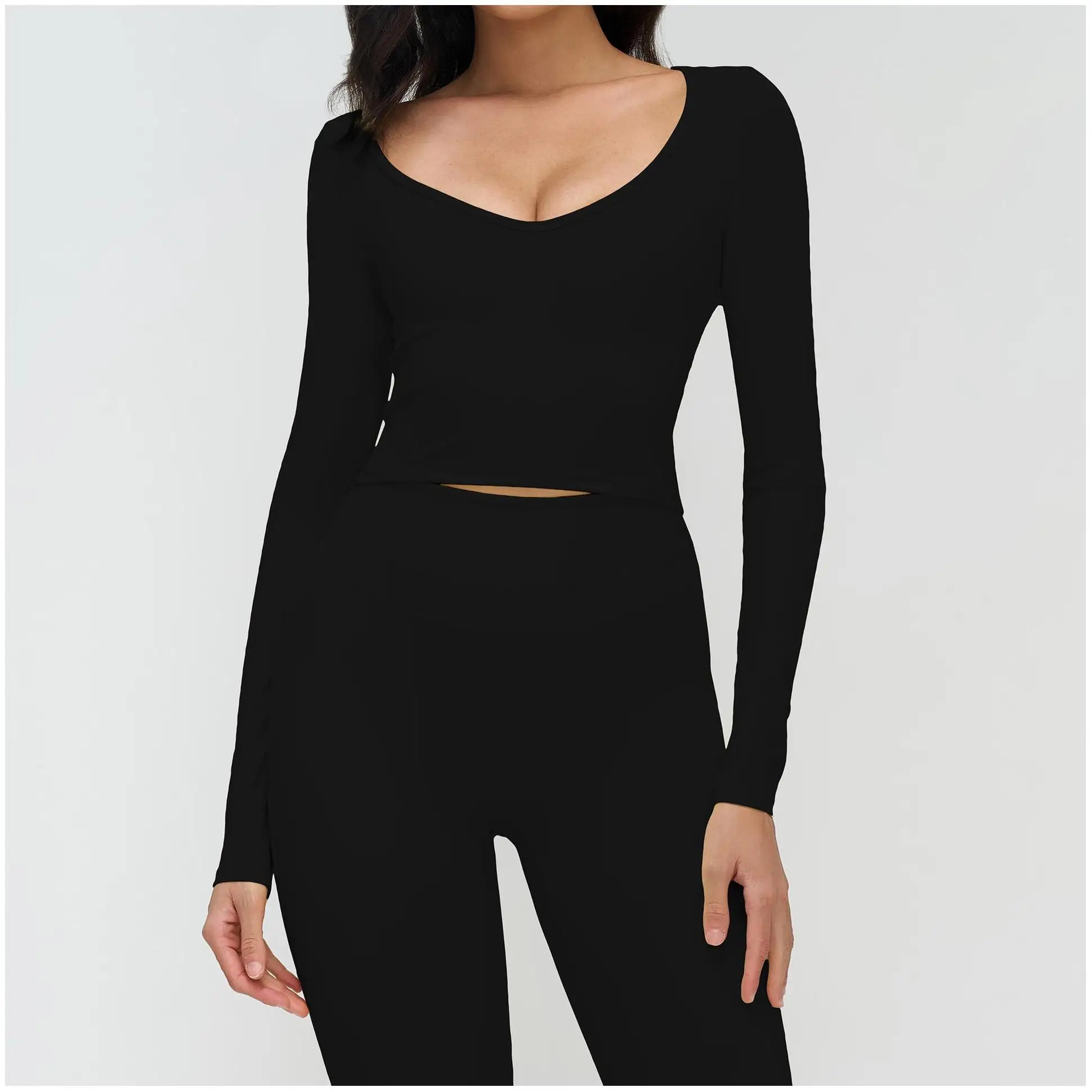 Tops Fold Over Stretchy V-Neck Sportswear Multi-Color Utility Long Sleeves Flowy Jogging Yoga Tank Top Women Breathable