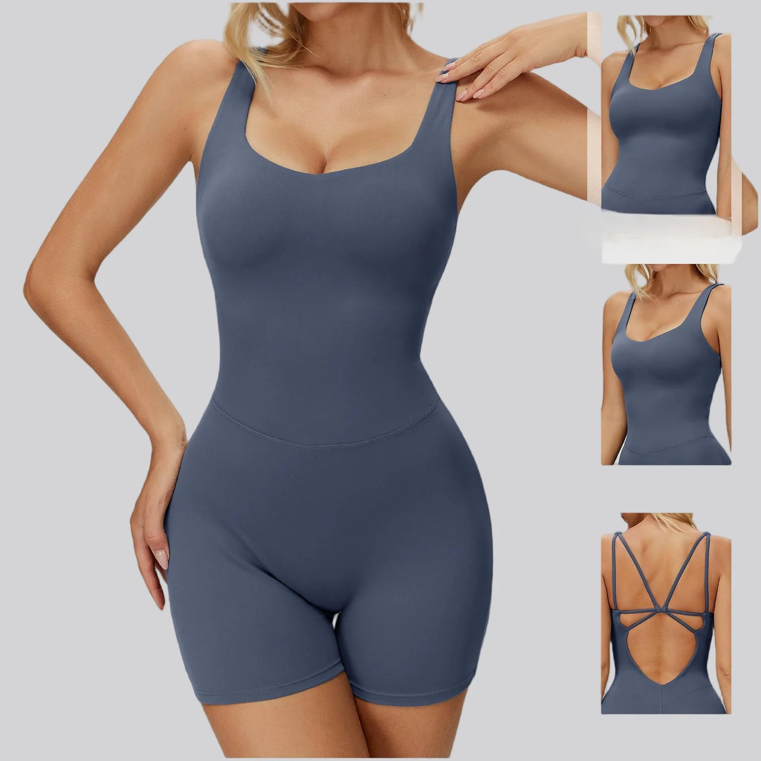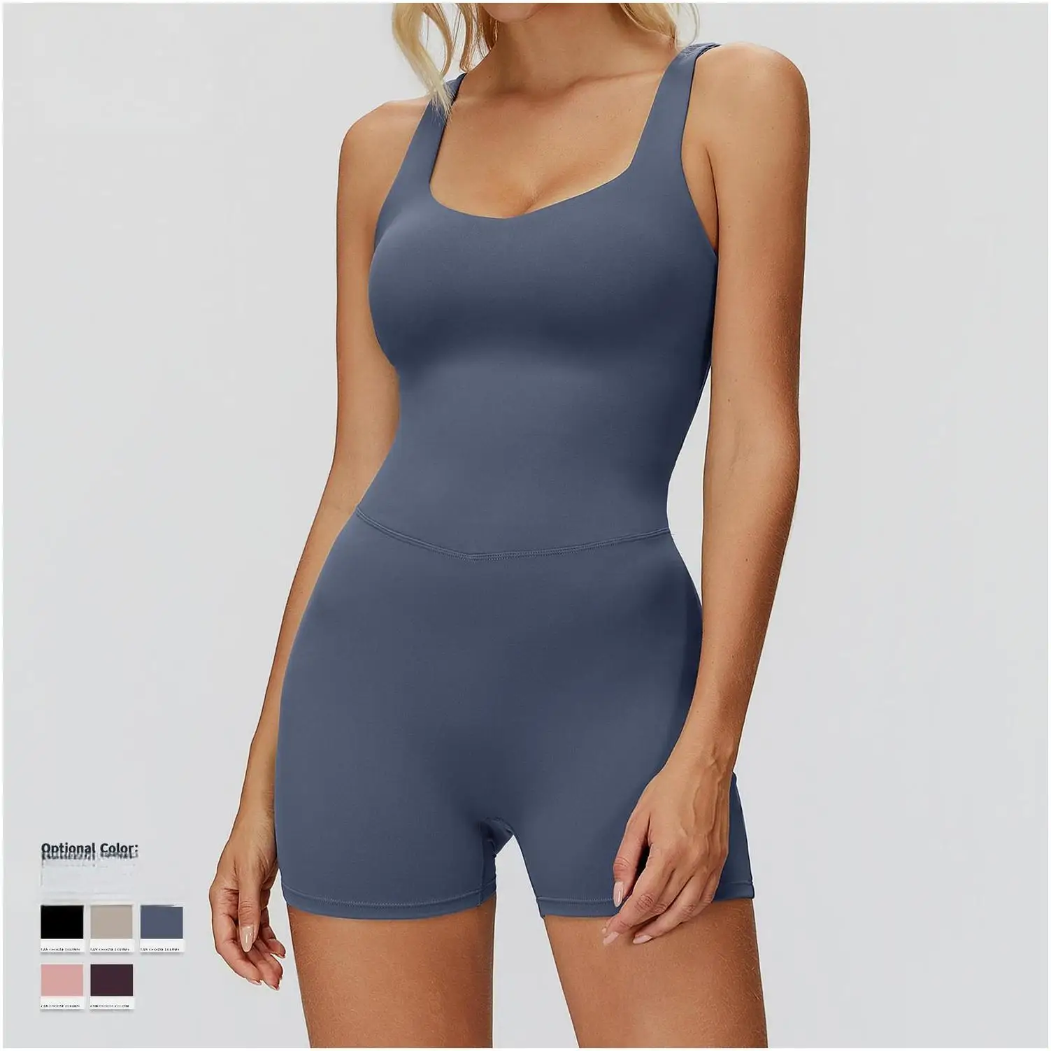 Leotards Casual Custom Logo Brushing Woman Clothes Sporty Basic Cross the Back Sporty Athletic 2026 Jumpsuit Yoga