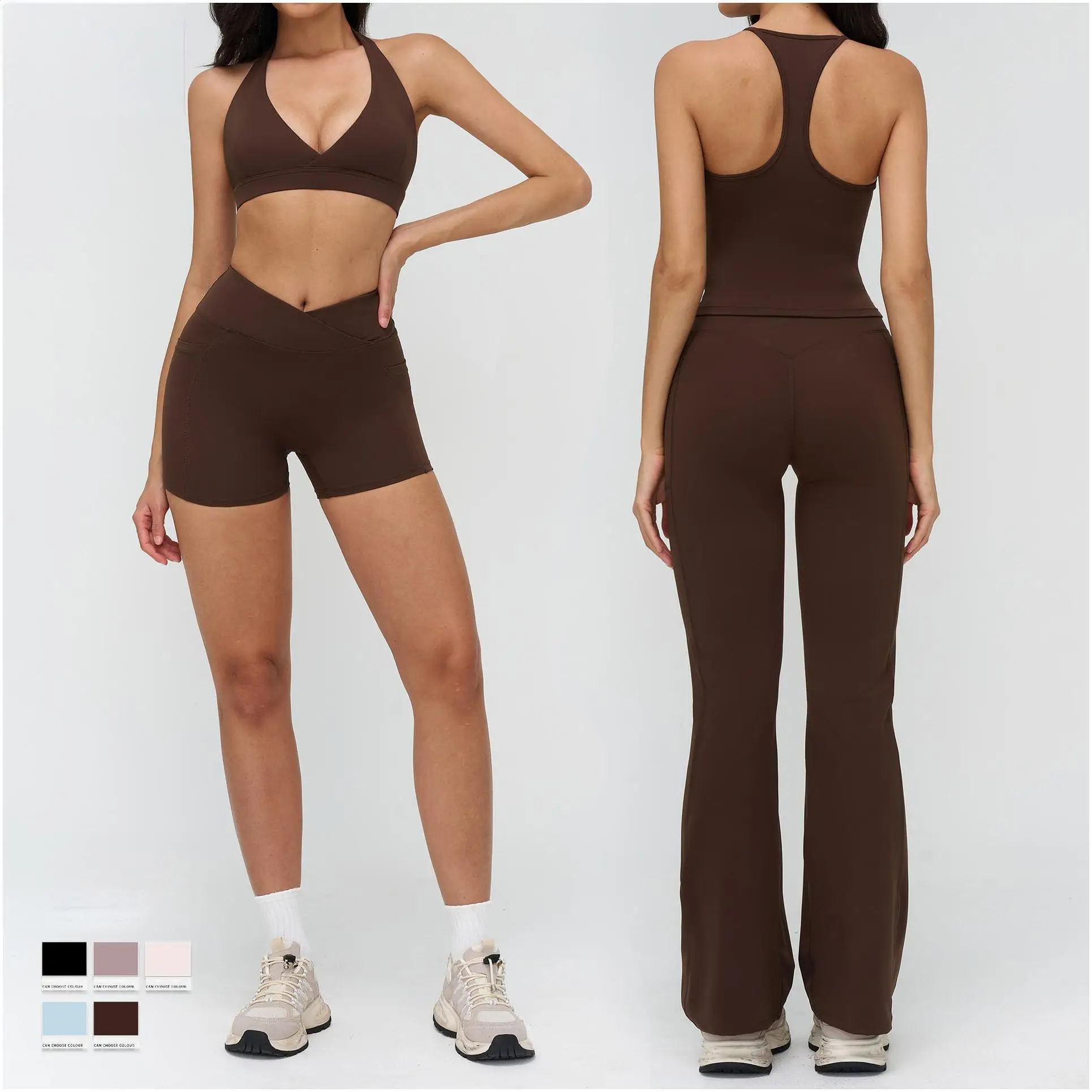 YISHENHON Recyclable Fabric Quick Dry Yoga V Waist Gym Leggings Running Workout Wide Leg Pants Flare Woman Sport Pants