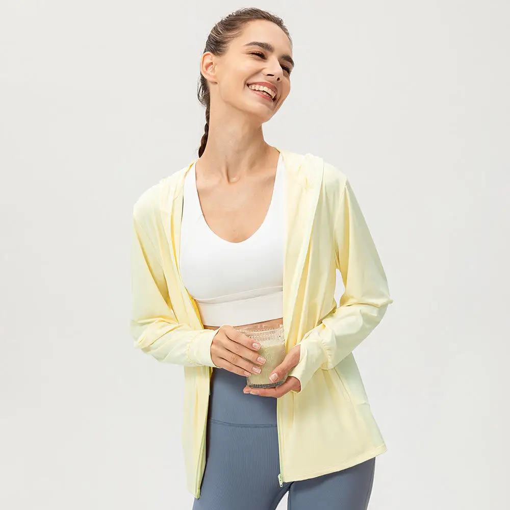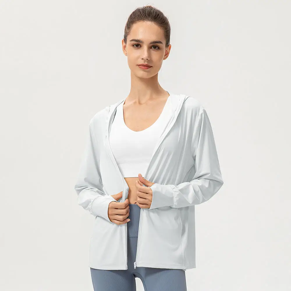 YISHENHON Custom Logo Slim Workout Top Yoga Jackets Zipper Womens Tight Quick Dry Long Sleeve Yoga Sports Coat With a Hat