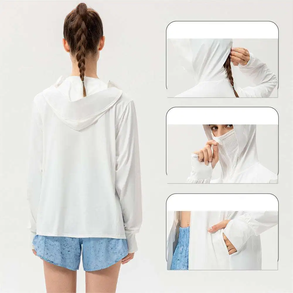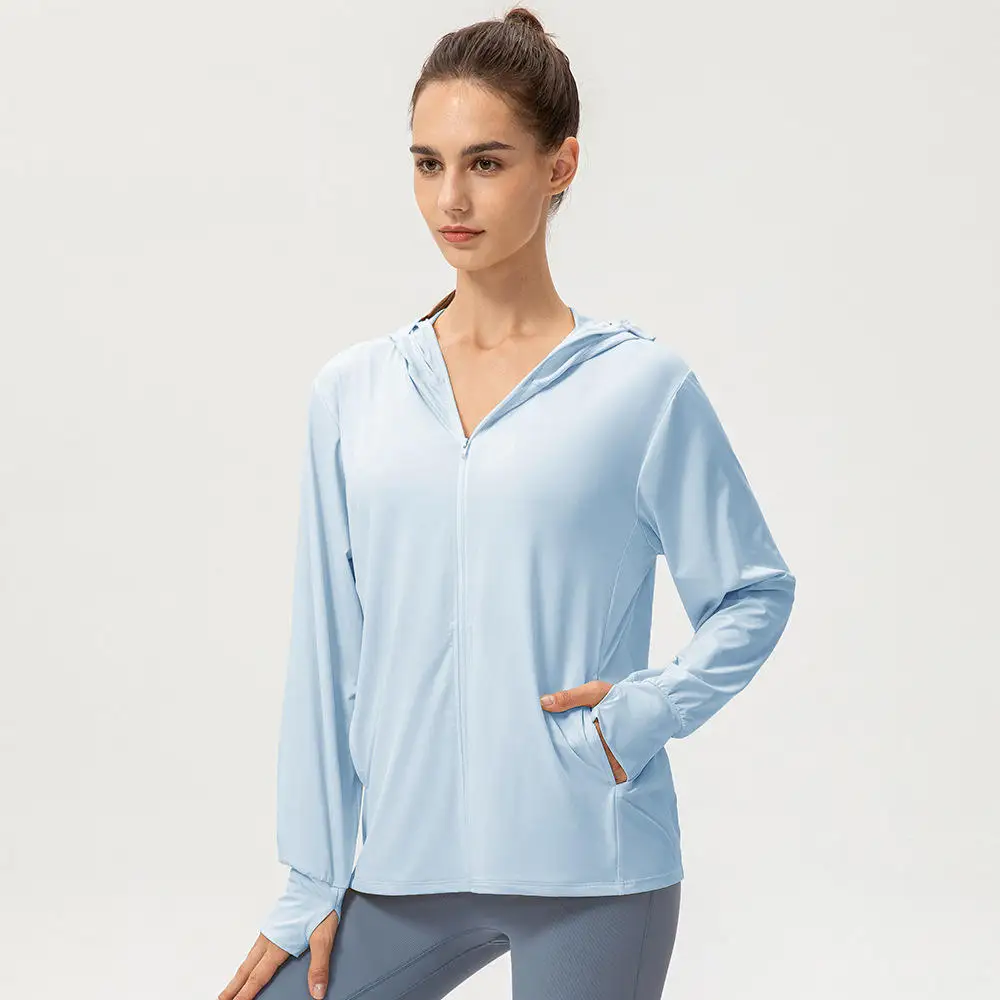 Women's UPF 50+ UV Protection Long Sleeve Sun Shirt Full Zipper Hooded Jacket with Pockets Rash Guard Clothing
