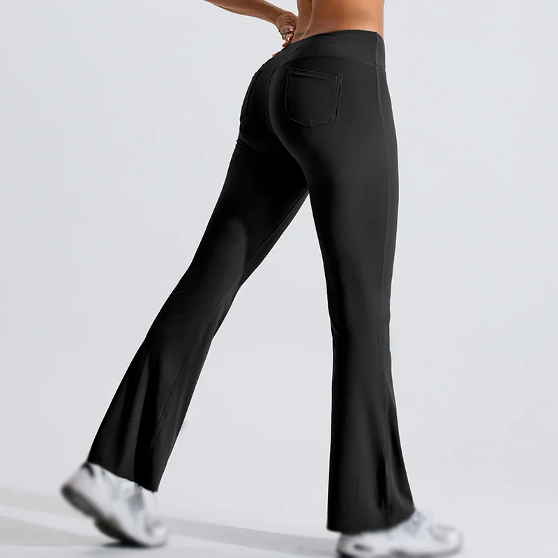 YISHENHON Recyclable Fabric Quick Dry Yoga V Waist Gym Leggings Running Workout Wide Leg Pants Flare Woman Sport Pants