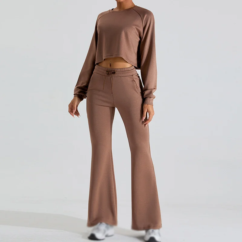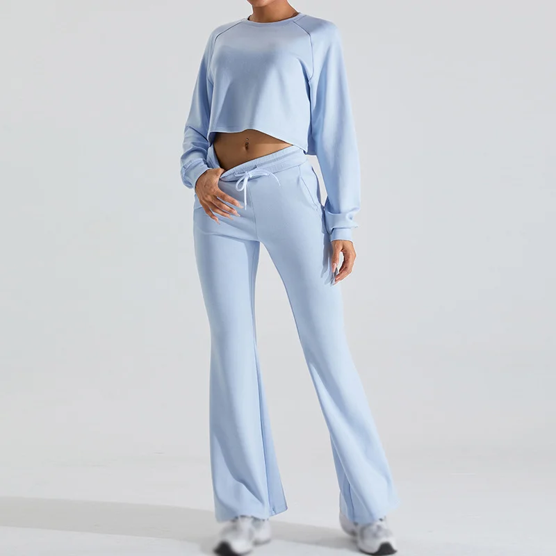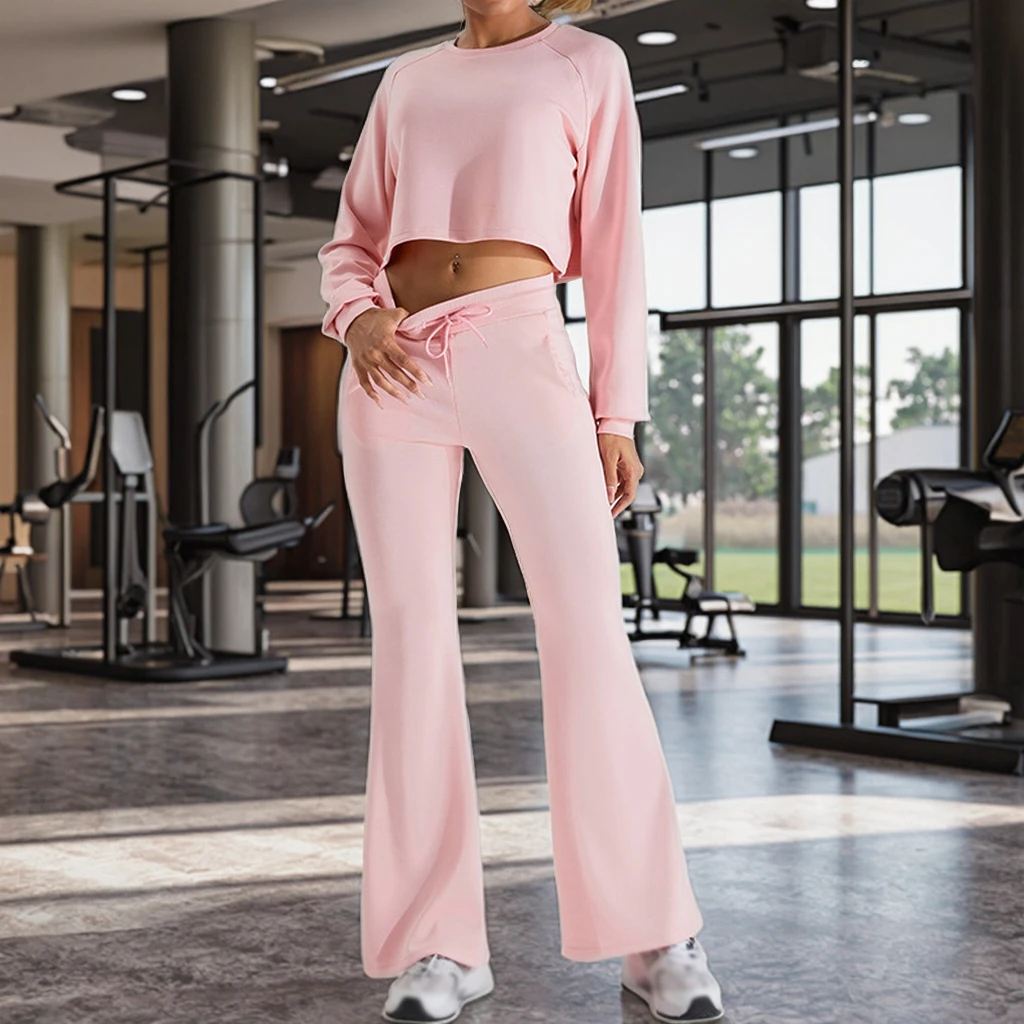 High Quality Custom Logo Long Sleeve Plus Size Cropped Top Sweatshirt Jogger Pants Women's Hoodies Sweatpants Two Piece Sets
