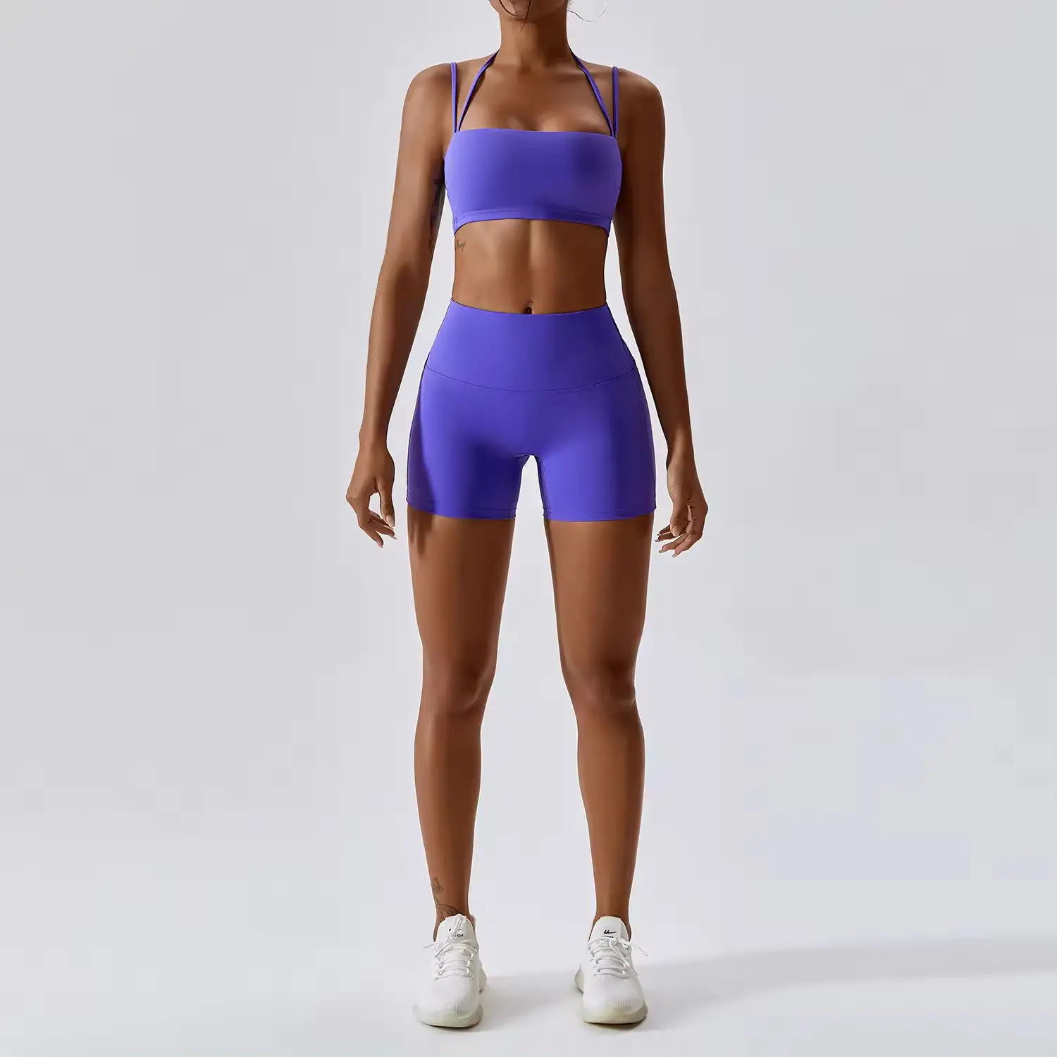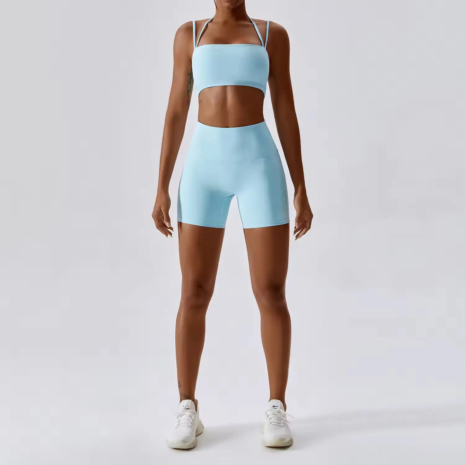 High Quality Womens Clothing Twist Sports Bra With Scrunch Shorts Gym Set Yoga Sets Fitness Women