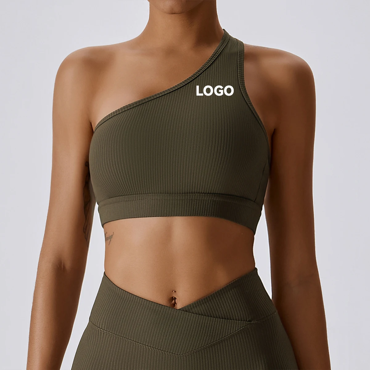 Women Compression Single Strap Soft Comfort Ribbed Yoga Bra