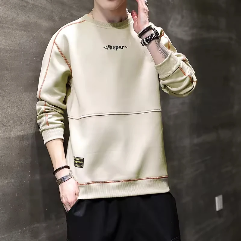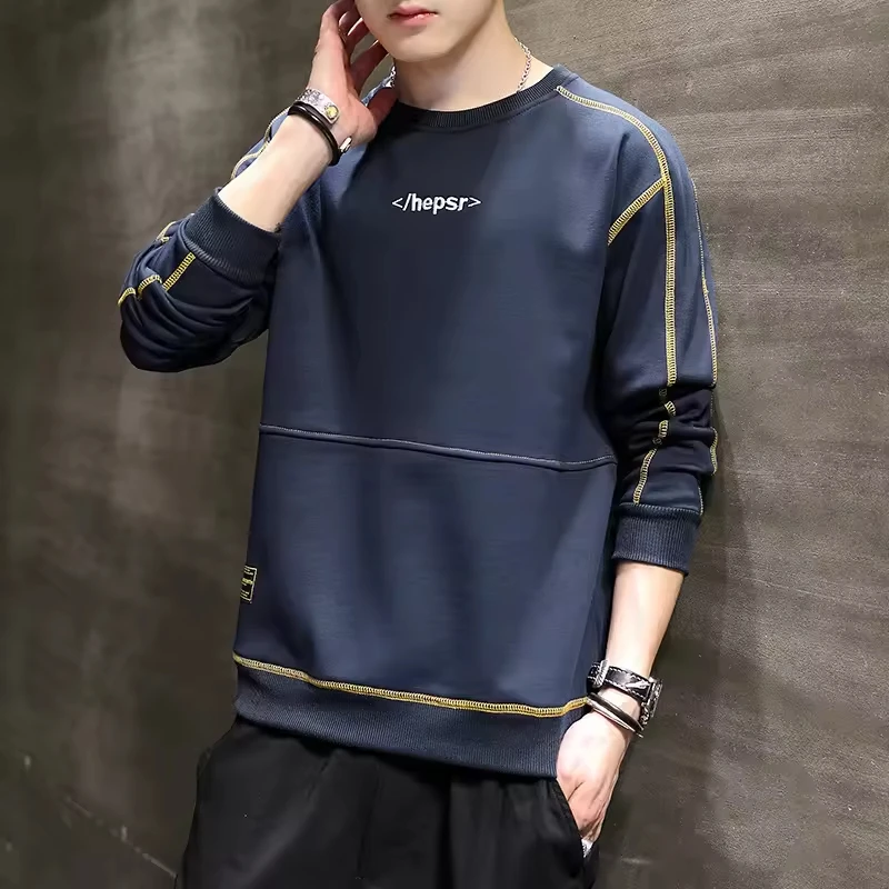 Autumn Trend Boneless Long Sleeved Pullover Top for Men Solid Color Crewneck with Printed Pattern ODM Supply