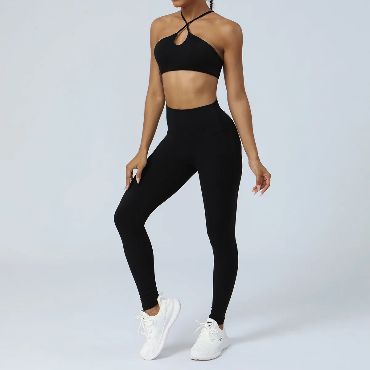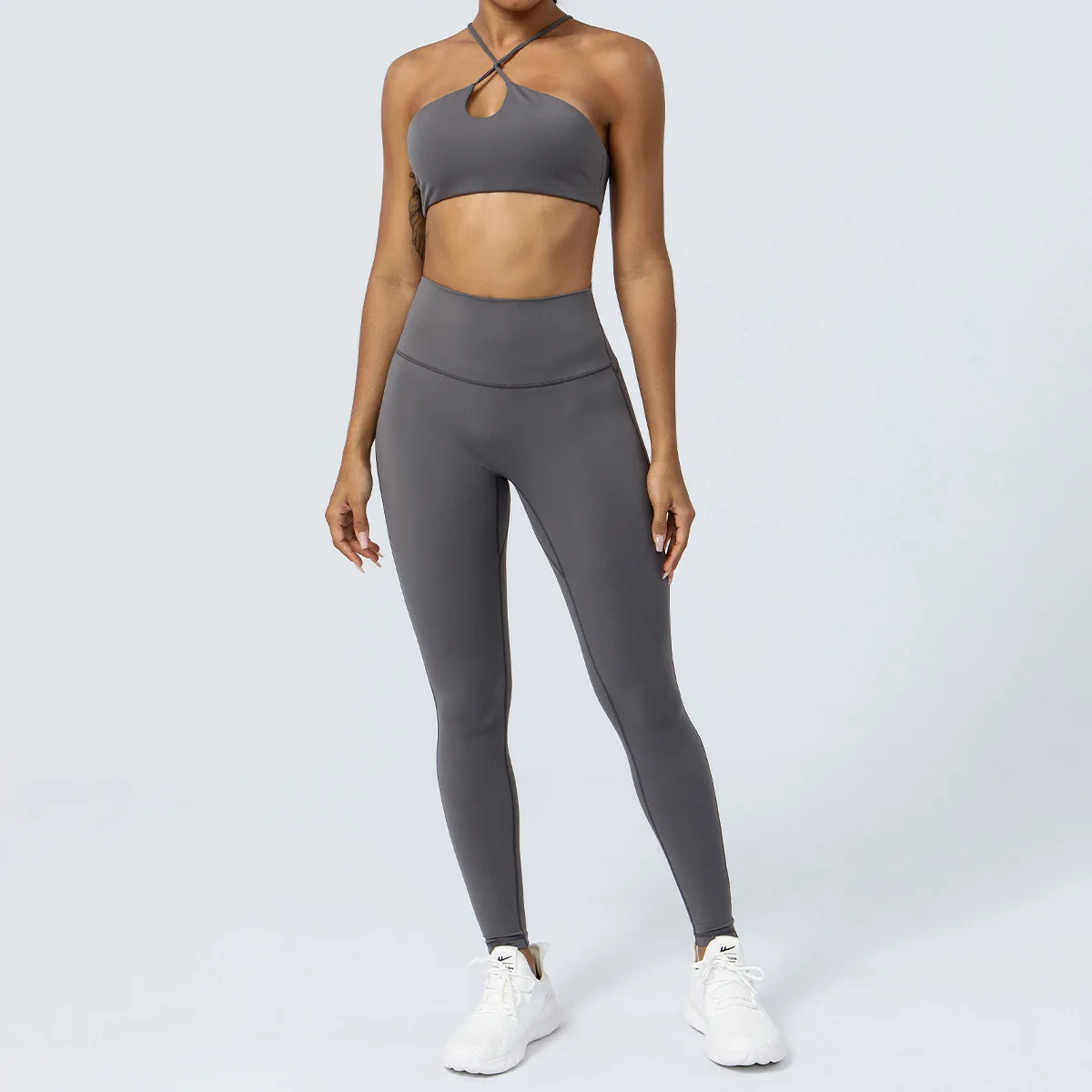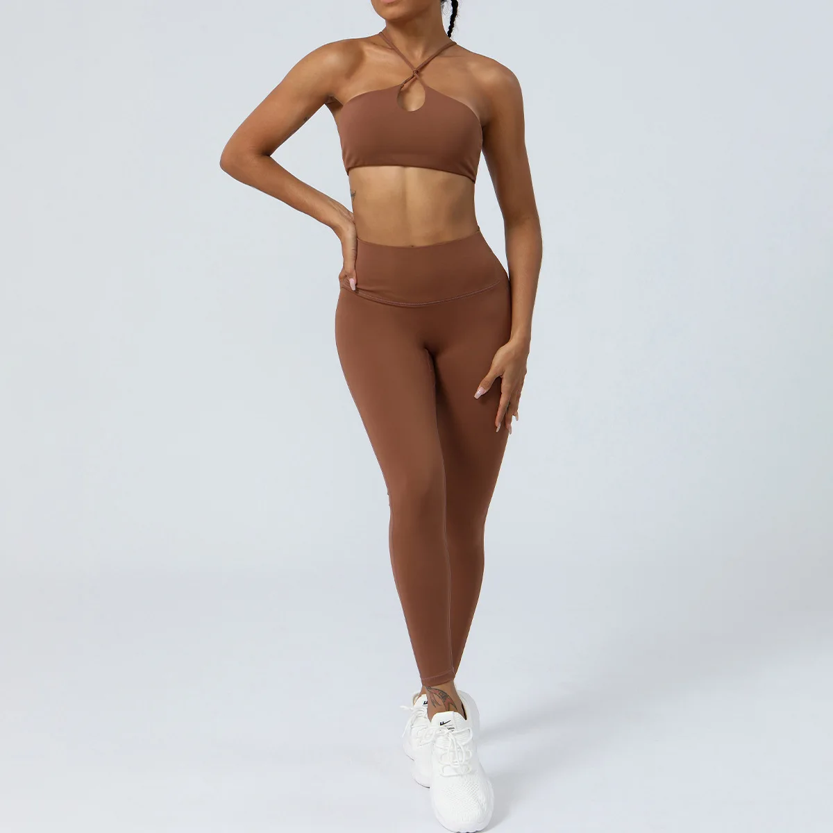 2026 Women's Plus Size Fitness Yoga Set Autumn Naked-Feel Sports Bra & Breathable Crotchless Leggings Cross Back Activewear