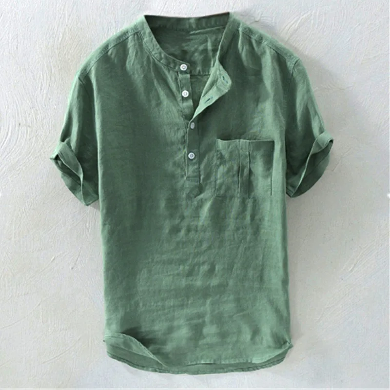 Men's Summer New Pure Cotton Hemp Button Sleeves Fashion Large Blouse Top New Fashion Shirts for Men Plus Size