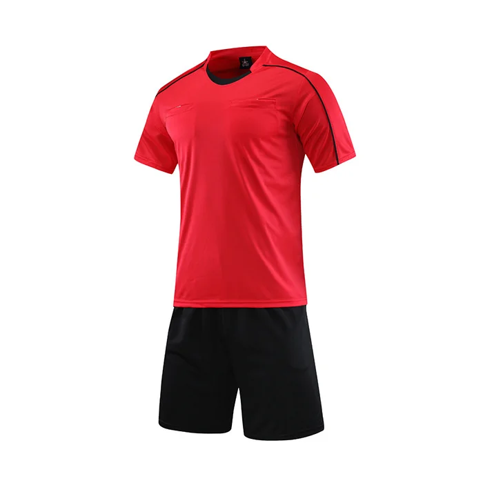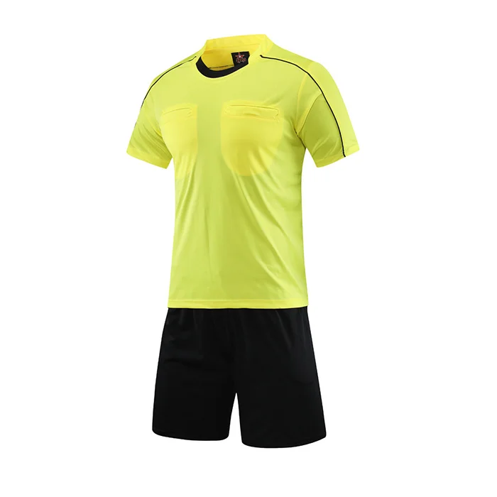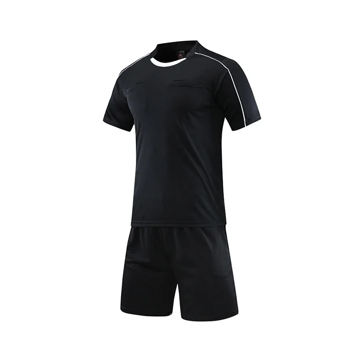 Wholesale Men's Football Referee Uniform Custom Logo Short Sleeve Round Neck Comfortable Breathable Three-pocket Soccer Jersey