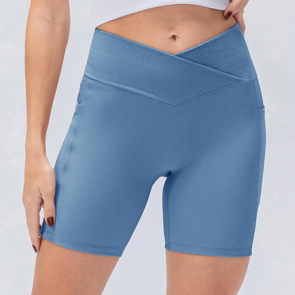 Women V Shape Waist Compression Quick Dry Training Shorts With Phone Pockets