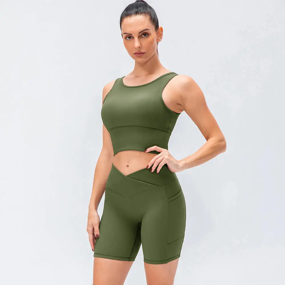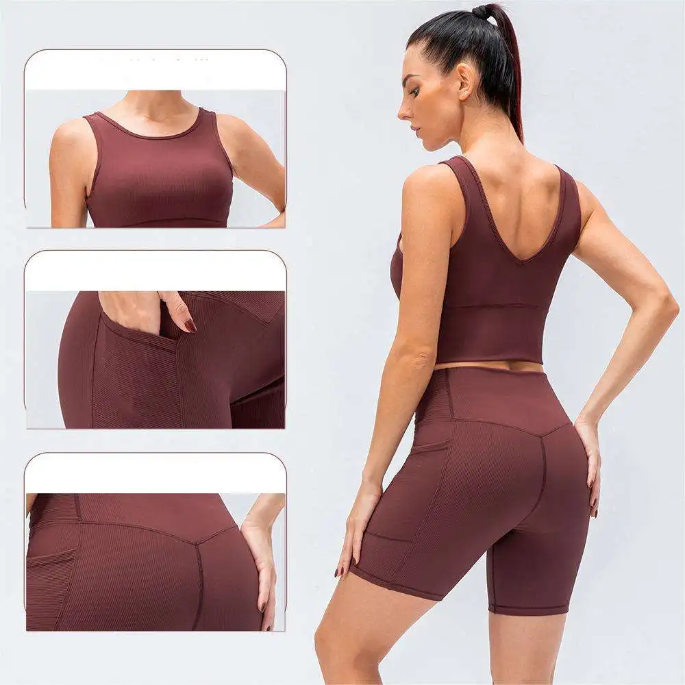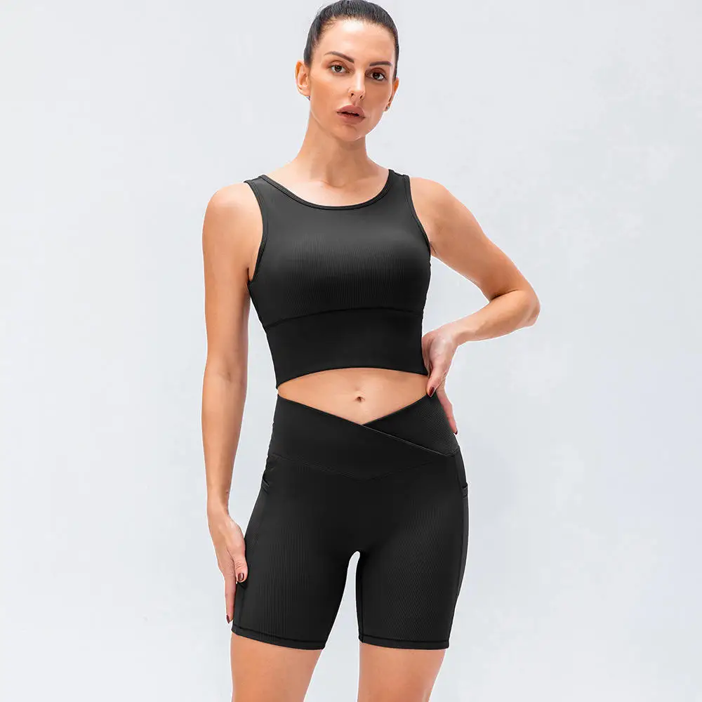 Custom High Quality Yoga Suit Breathable Running Fitness Vest High Waist Tight Shorts 2pcs High Elastic Ribbed Print XL Yoga Set