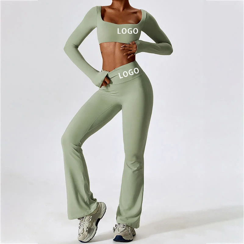 YISHENHON Recyclable Fabric Quick Dry Yoga V Waist Gym Leggings Running Workout Wide Leg Pants Flare Woman Sport Pants
