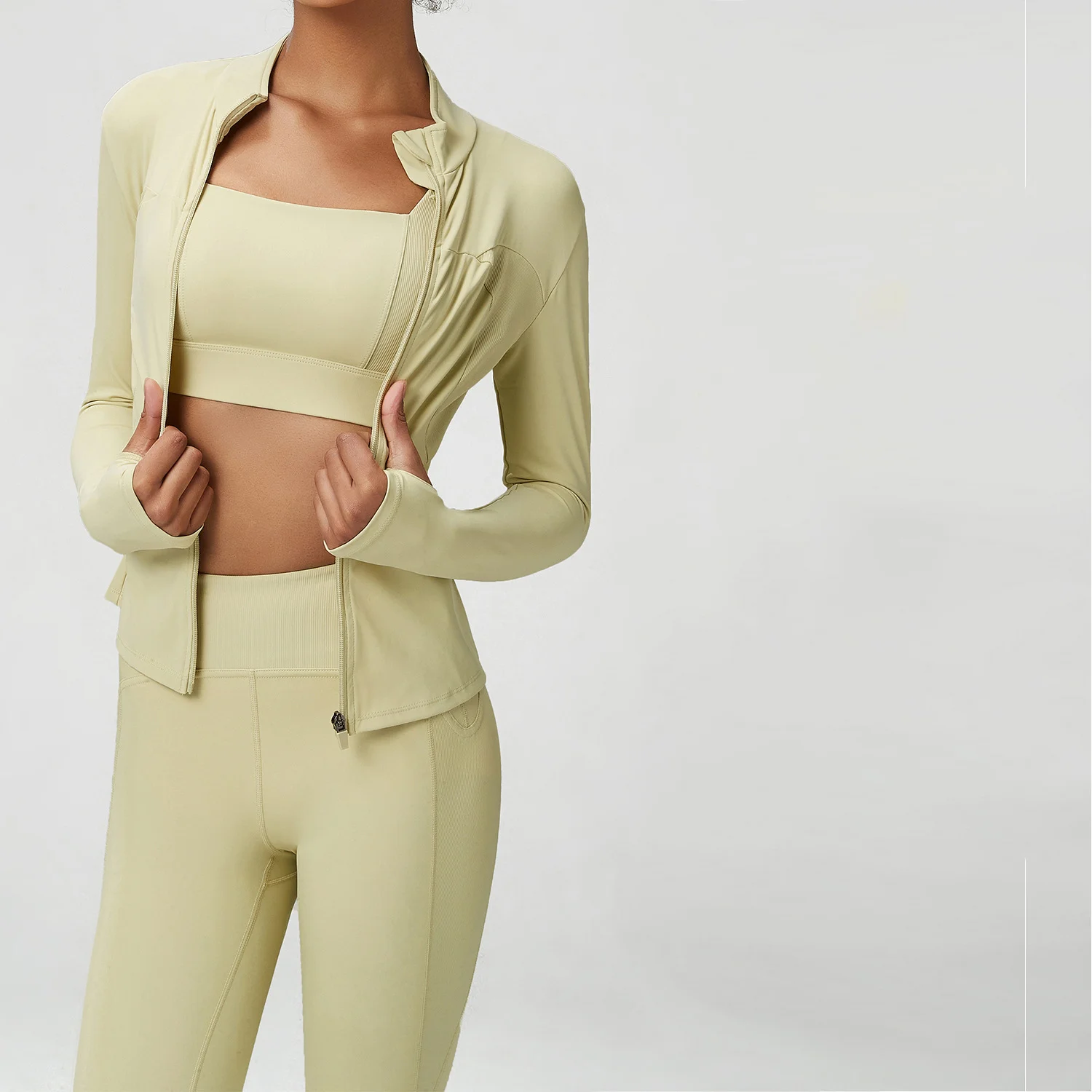 YISHENHON New Arrivals Quick-drying Women's Tight Running Sports Fitness Yoga Jacket Activewear Zip Long Sleeve Workout Crop Top