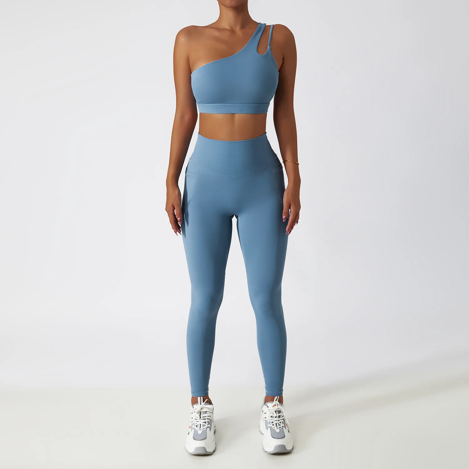 2026 Nude One Shoulder Shockproof Bra Leggings Quick Dry Active Wear Gym Fitness Workout Sports Suits Yoga Sets Women