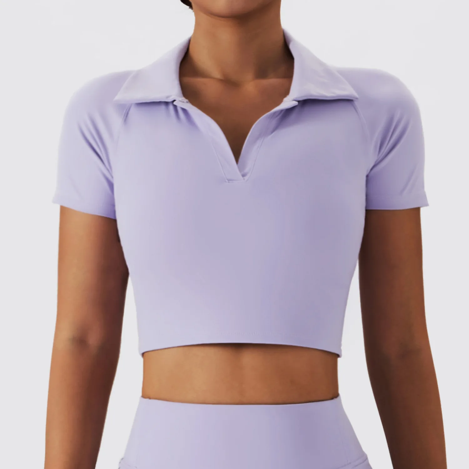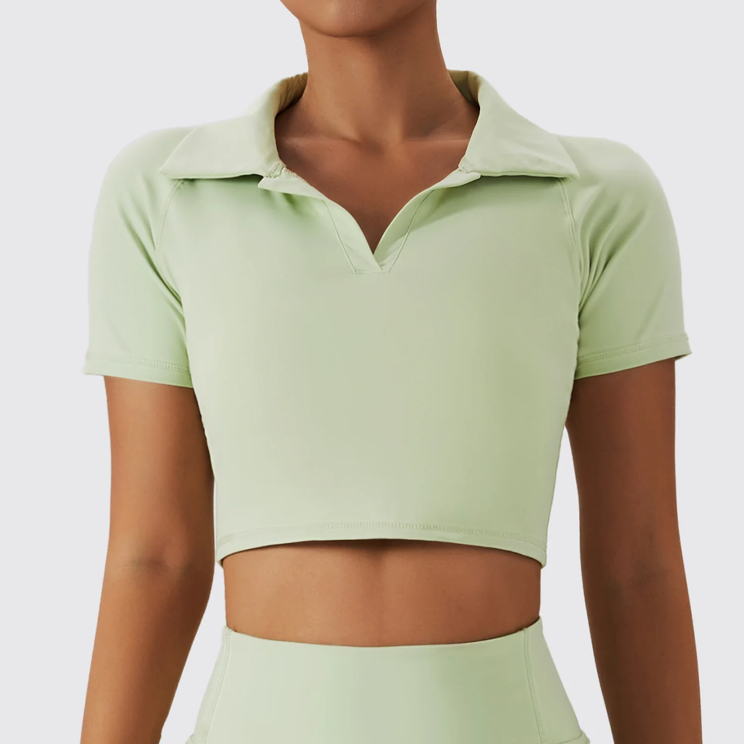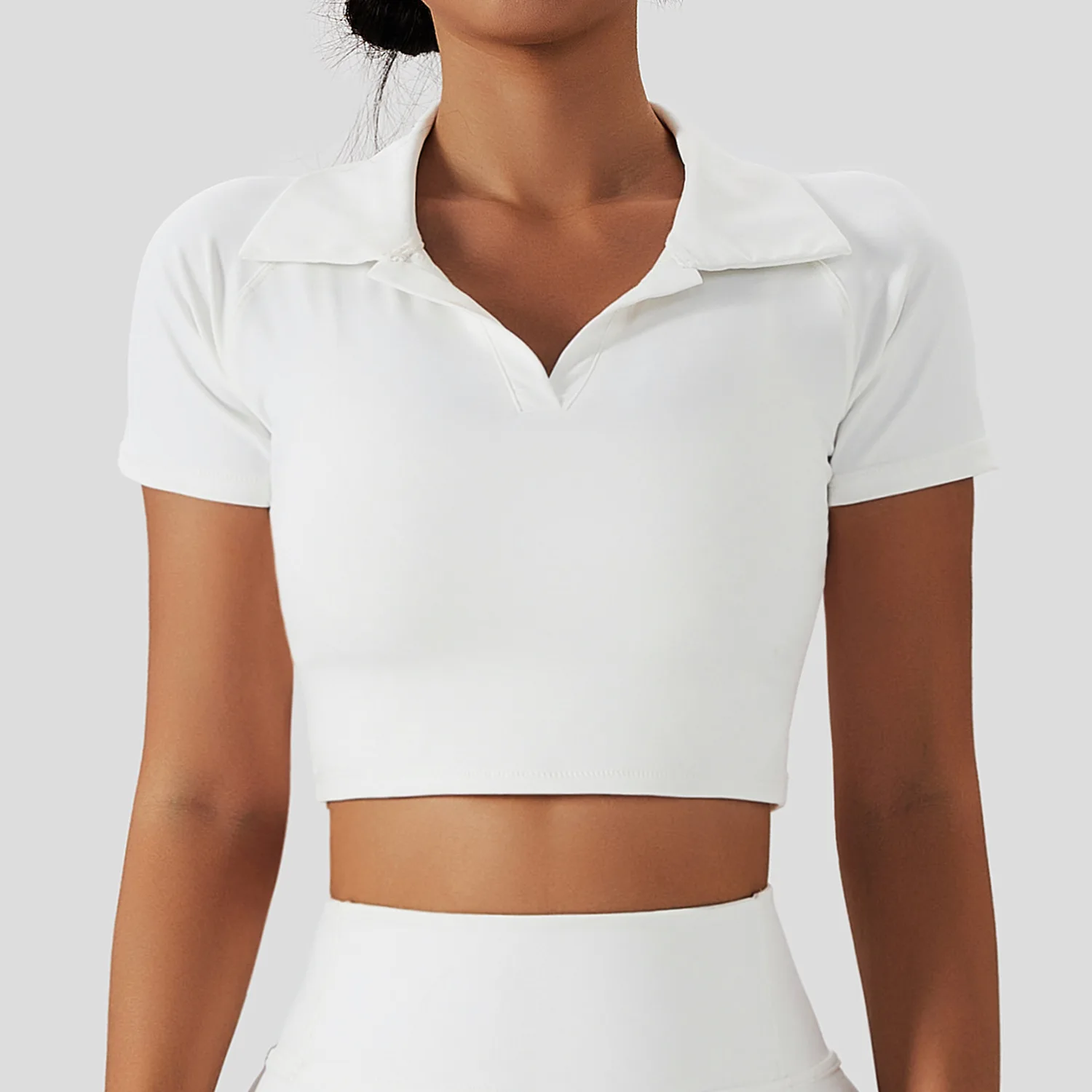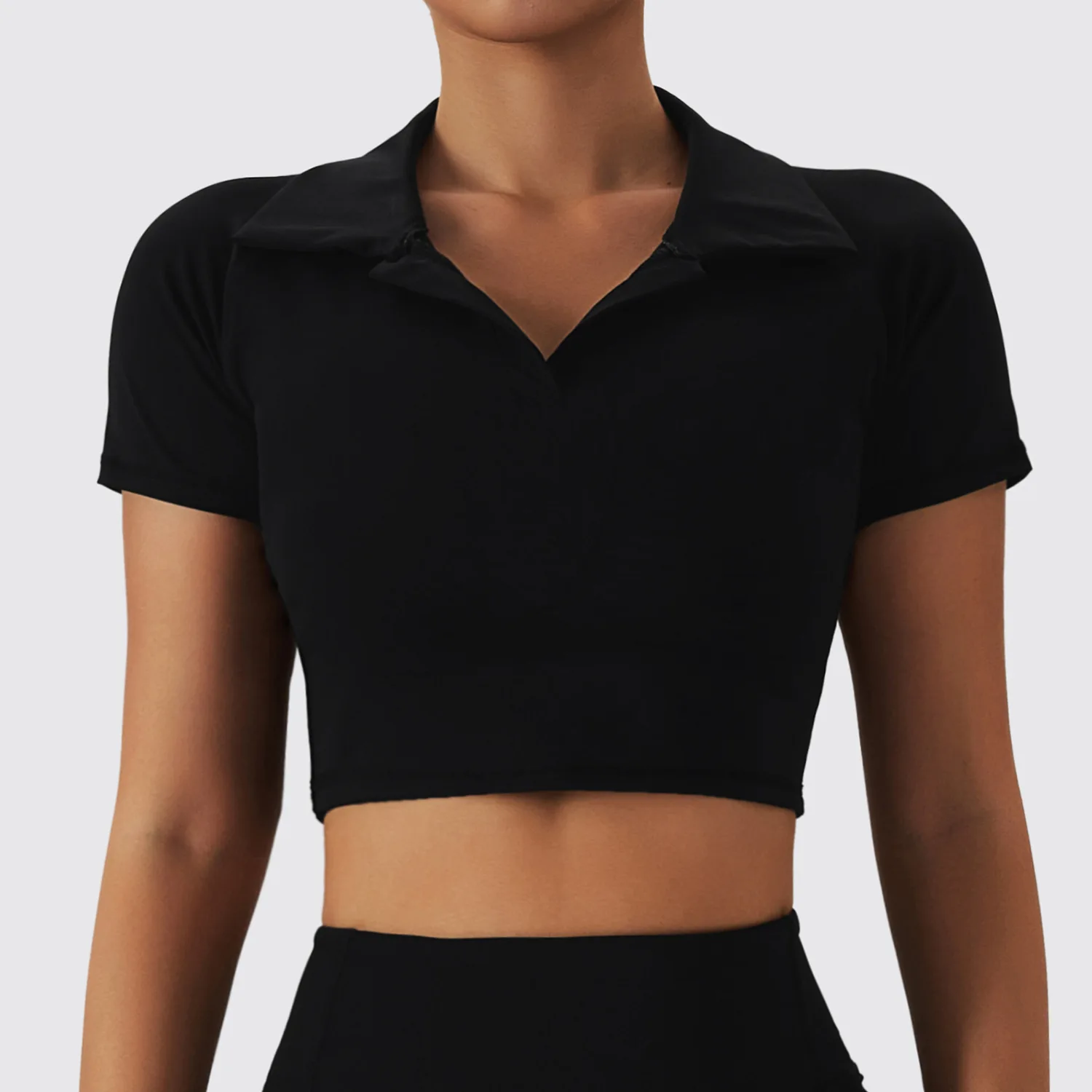 Womens Crop Top Workout Turn Down Collar T-shirts Workout Yoga Tops Women Sports Wear Active Short Sleeves Shirts