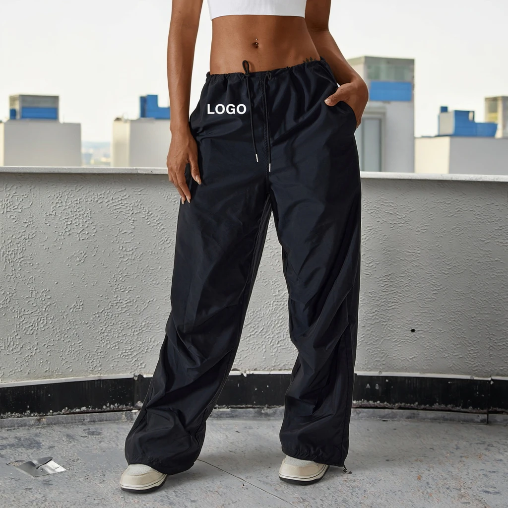Wide Leg Casual Jogger Pants High Quality Sweatpants Drawstring Custom Women Flare Cargo Sweatpants