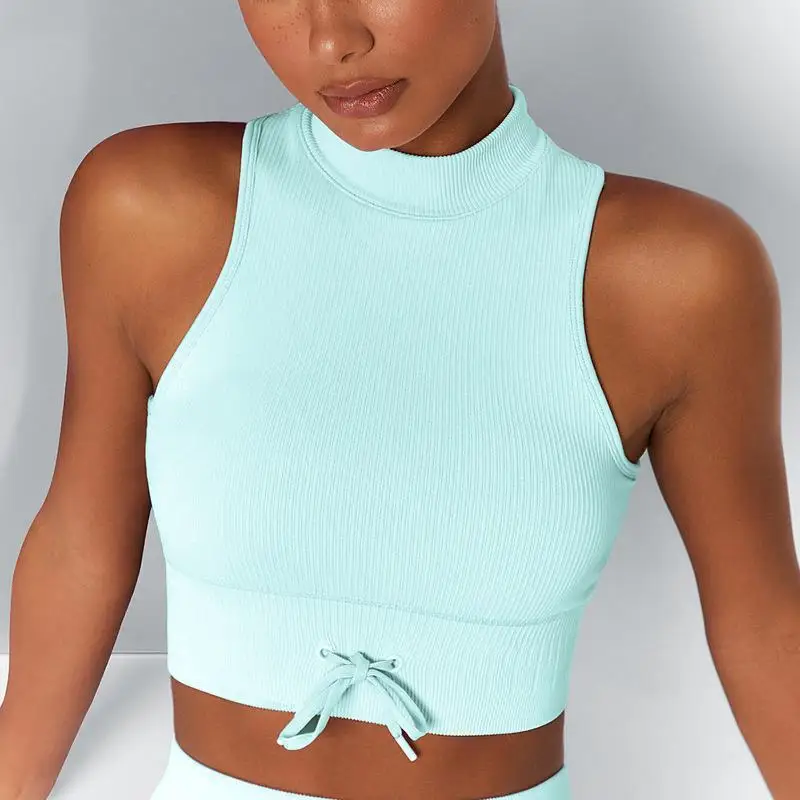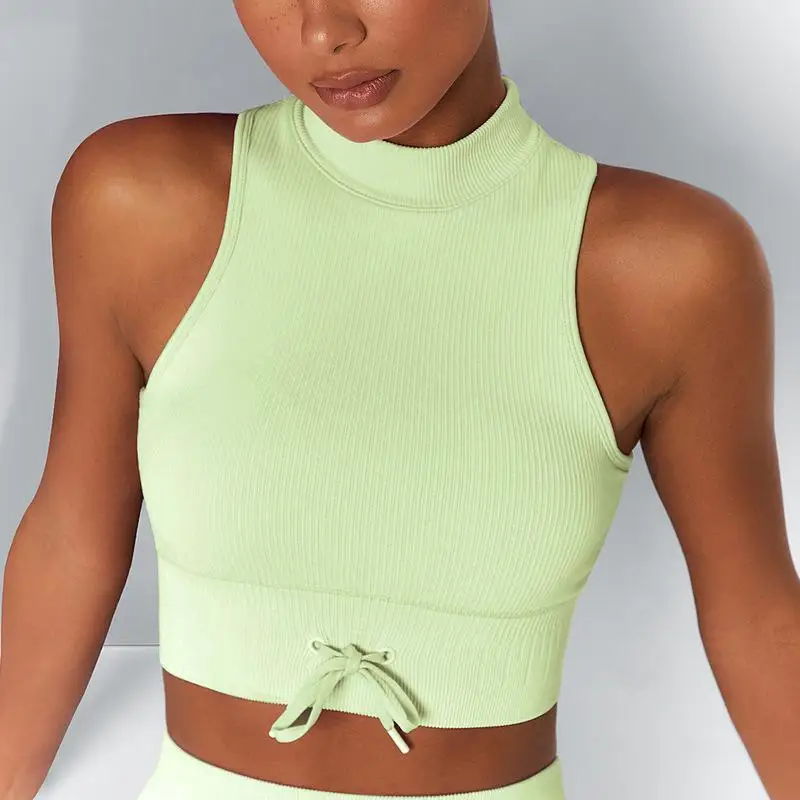 New Style Solid Seamless Bra Gather Shrink Strap Yoga Underwear Fitness Turtleneck Vest Gym Yoga Active Wear Thin Strap Vest