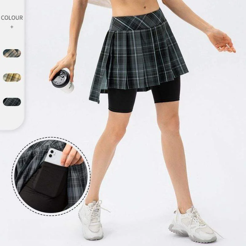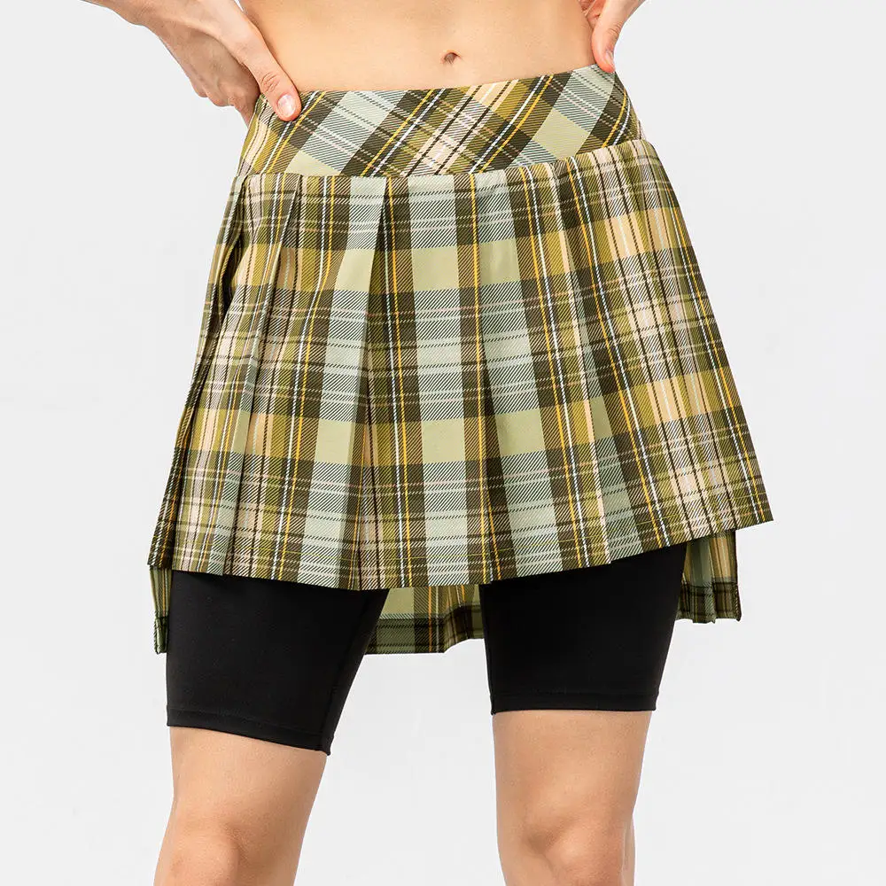 2026 High Quality Tennis Skirt for Women High Waist Plaid Pattern Running Skirt With Pockets Pleated Sports Skirt