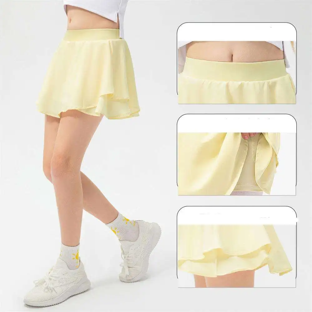Custom Logo 2 in 1 Skirt Quick Dry Soft Kids High Waist Athletic Workout Sports Tennis Skirts With Pockets Shorts for Girls