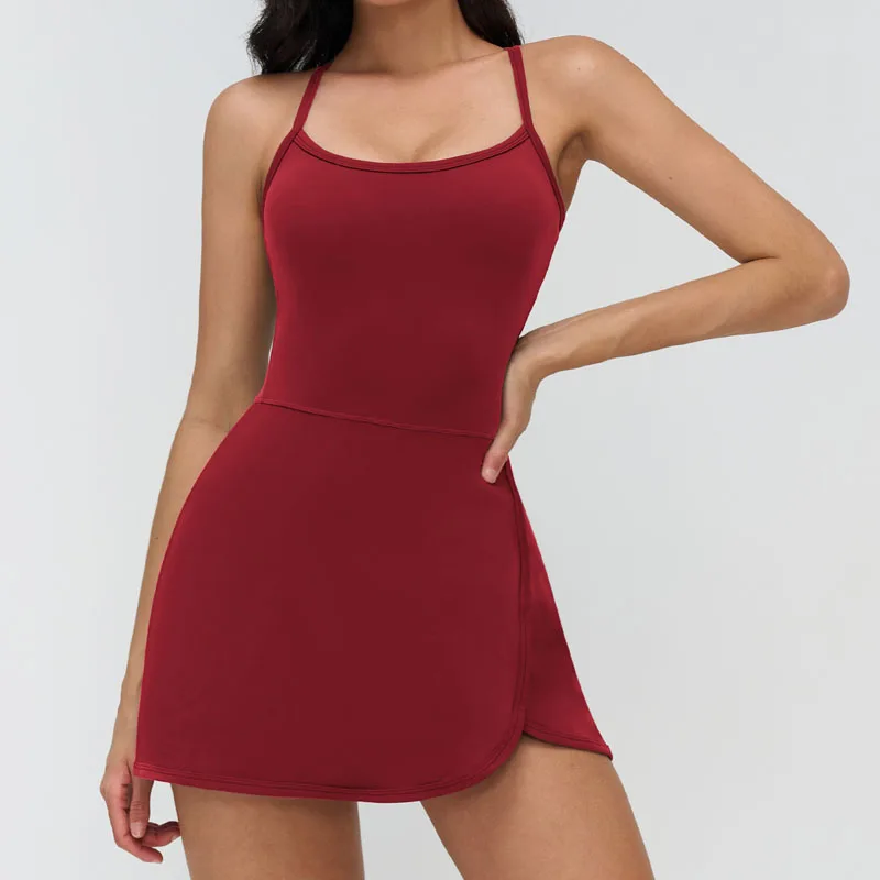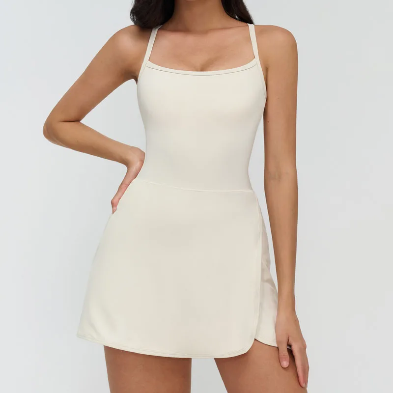 2026 New Design Women Tennis Dress Adjustable Strap Slim Fit Quick Dry Breathable Outdoor Golf Dress With Safe Shorts For Women