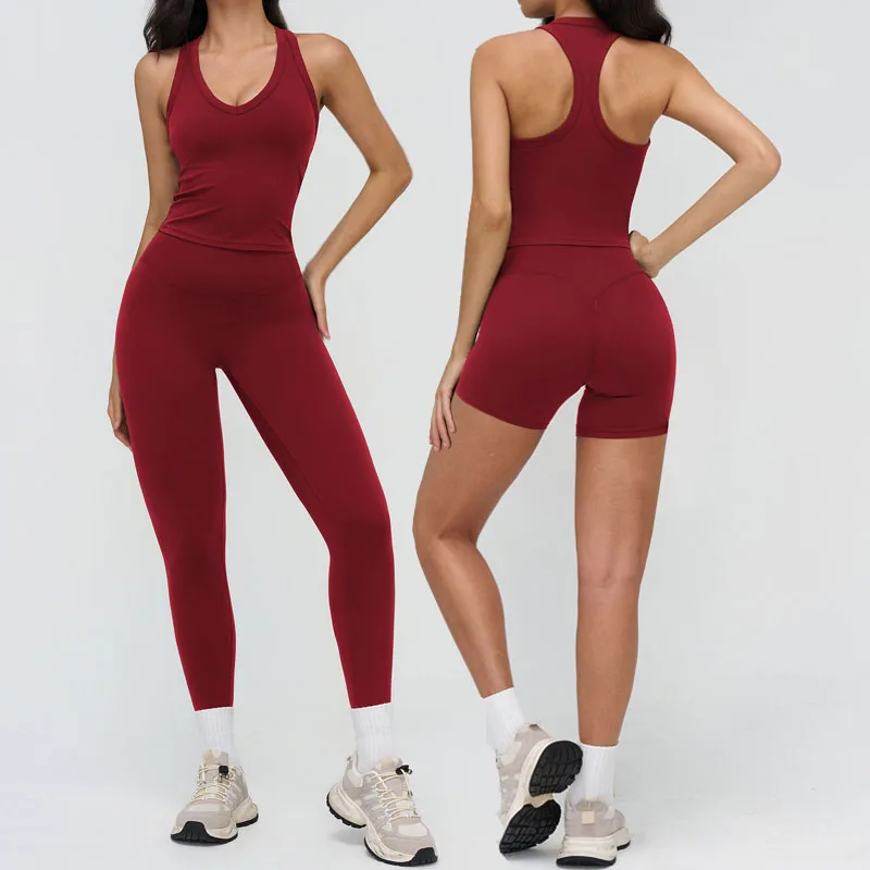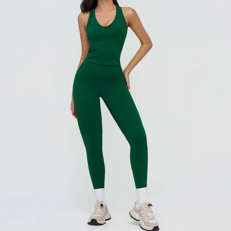 Custom Logo Women Yoga Set Breathable Tank Top High Waist Butt Lift Tummy Control Leggings Active Stretch Workout Running Wear