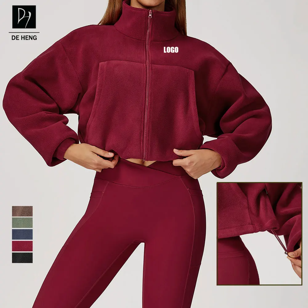 New Womens Clothes Stand Collar Windproof Warm Velvet Drawstring Fleece Women'S Running Jacket Zipper Women's Sports Sweatshirts