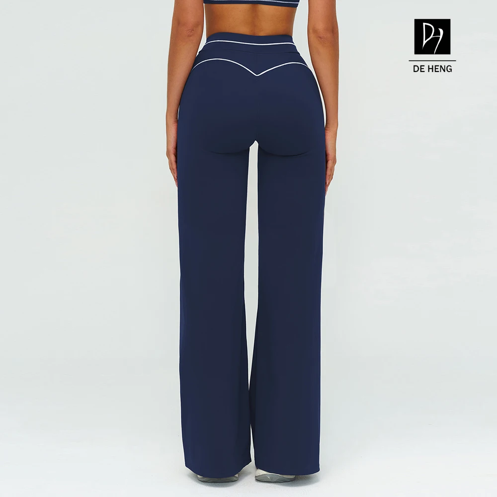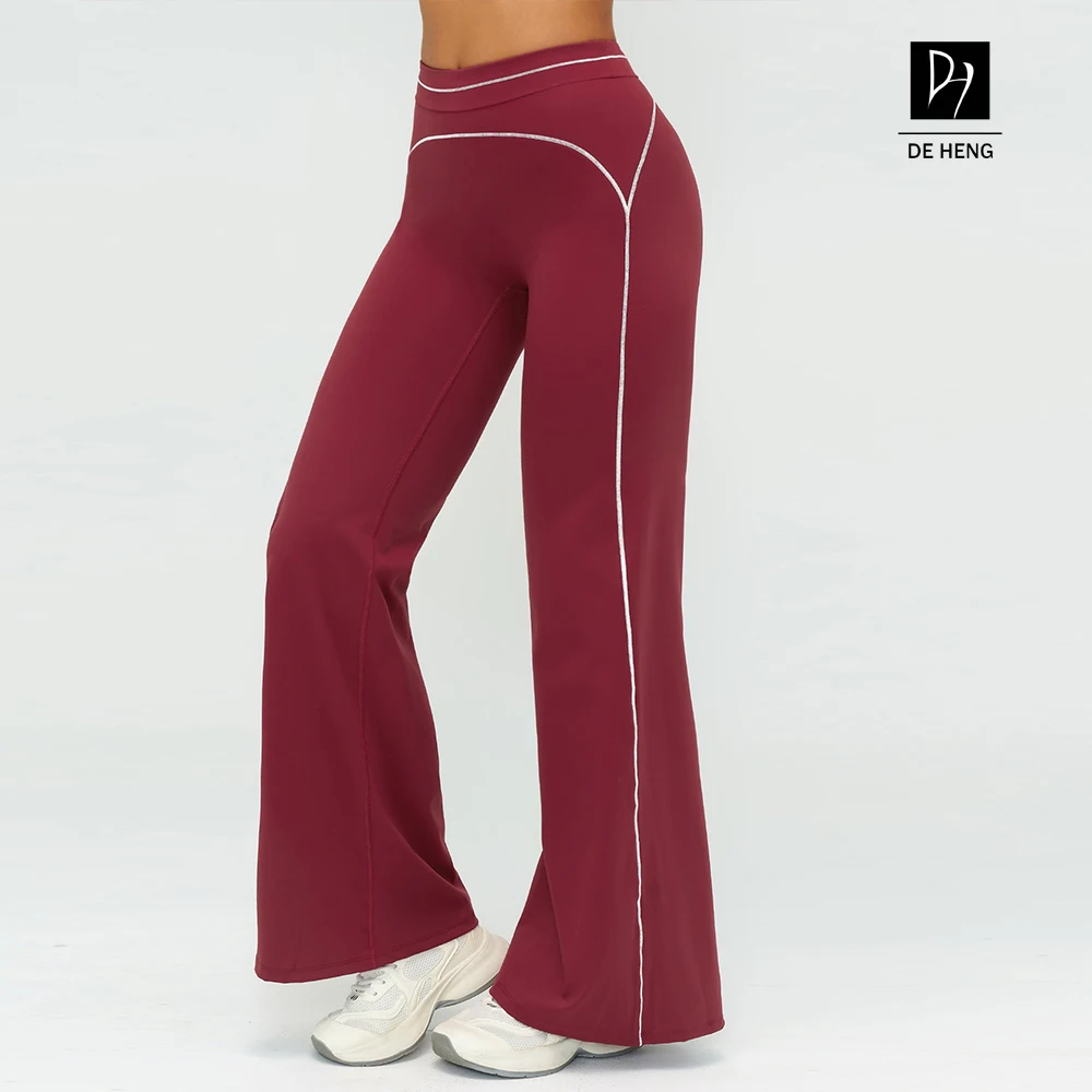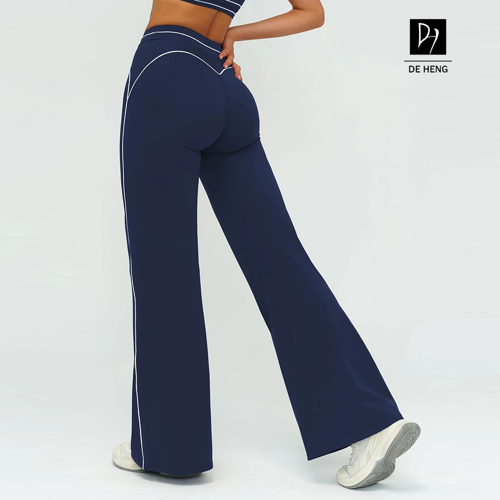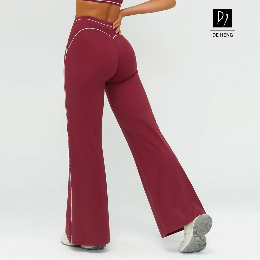 YISHENHON Recyclable Fabric Quick Dry Yoga V Waist Gym Leggings Running Workout Wide Leg Pants Flare Woman Sport Pants