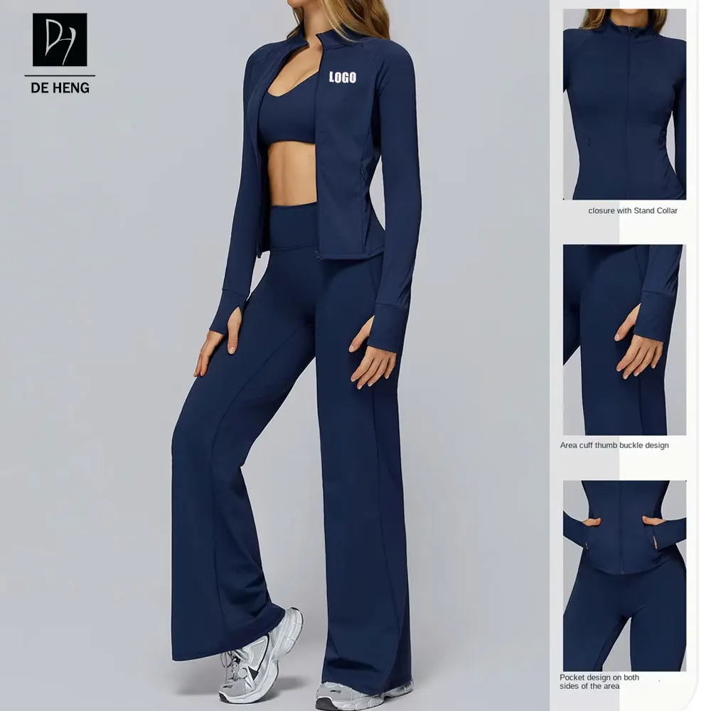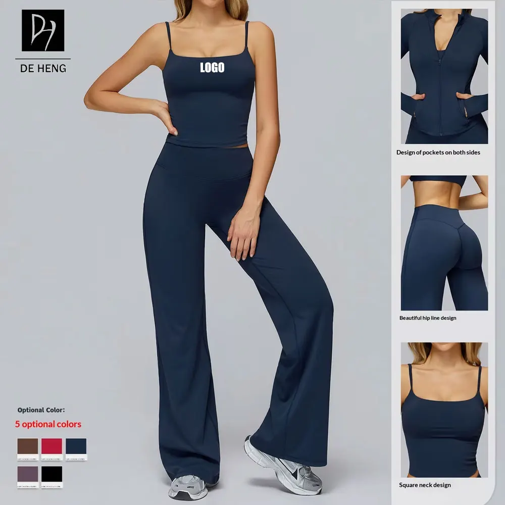 YISHENHON Recyclable Fabric Quick Dry Yoga V Waist Gym Leggings Running Workout Wide Leg Pants Flare Woman Sport Pants