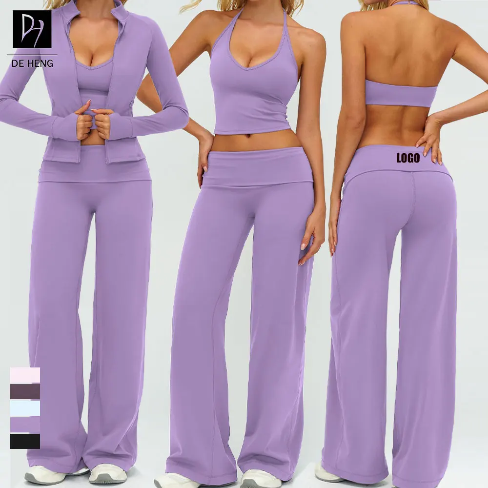 Custom Workout Sports Bra and Leggings Set Sexy Gym Fitness Sportswear Activewear 3 Piece Yoga Wear Set Women Yoga Set