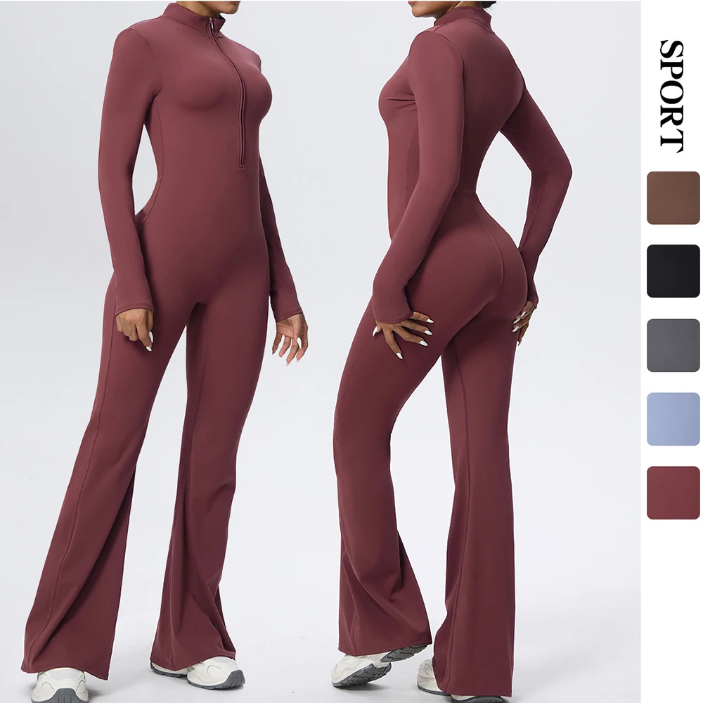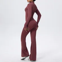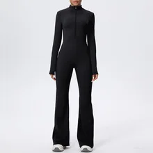 Custom Backless Long Sleeve Adjustable Yoga Fitness Women Sports One Piece Gym Scrunch Bodysuits Jumpsuit