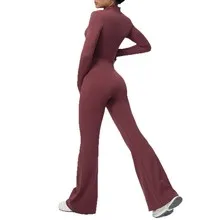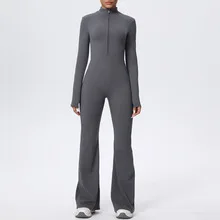 2026 Custom Backless Long Sleeve Adjustable Yoga Fitness Women Sports One Piece Gym Scrunch Bodysuits Jumpsuit