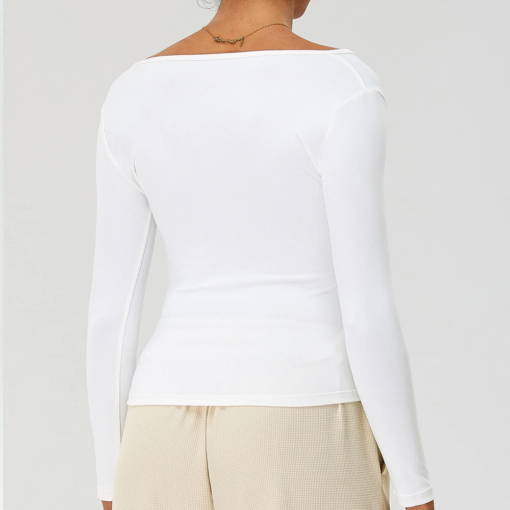 Long Sleeve V Neck Breathable Ribbed Quick Dry Workout No Padding Custom Logo Gym Sports Fitness Yoga Top