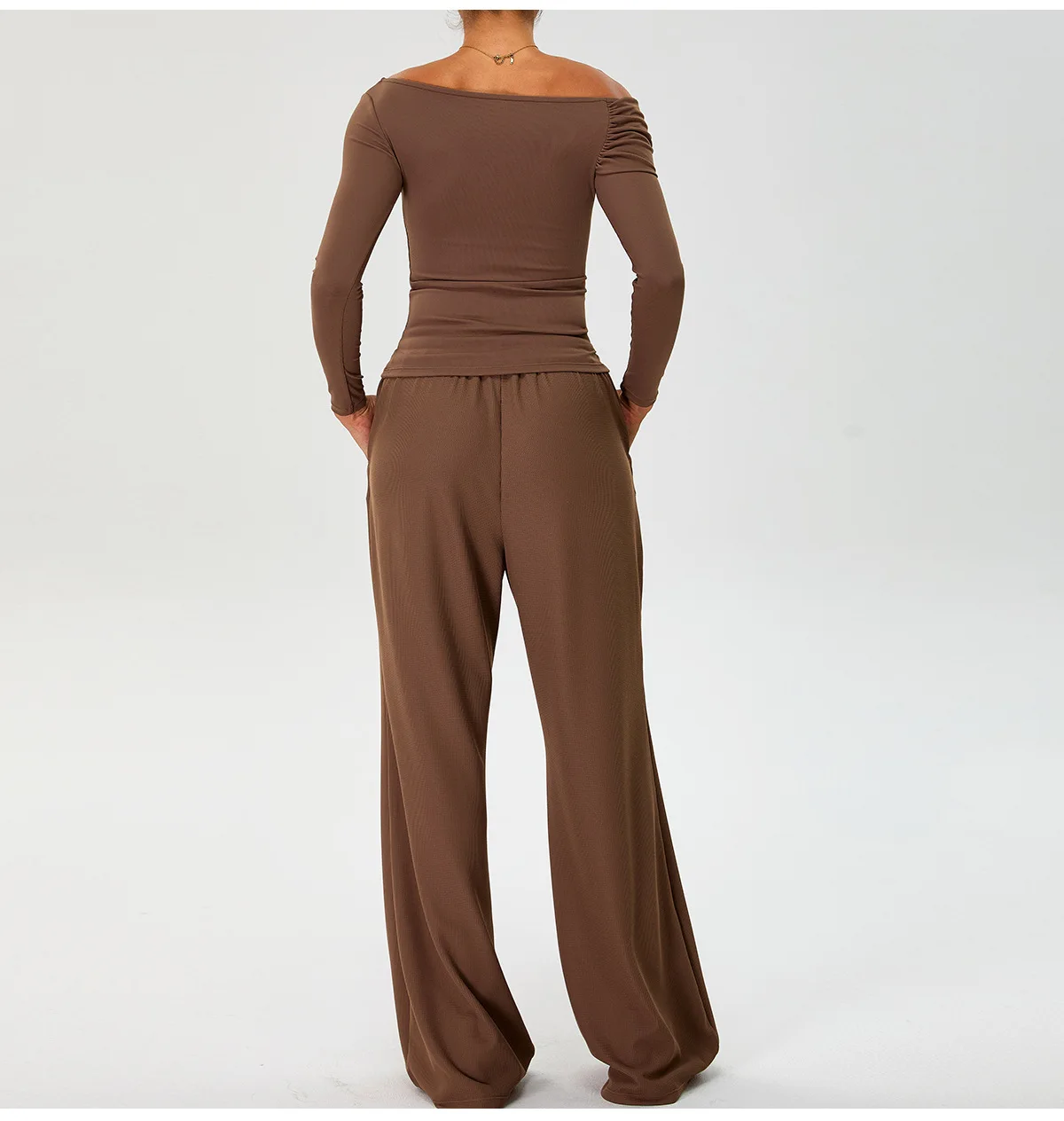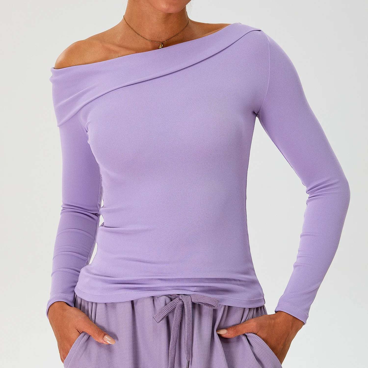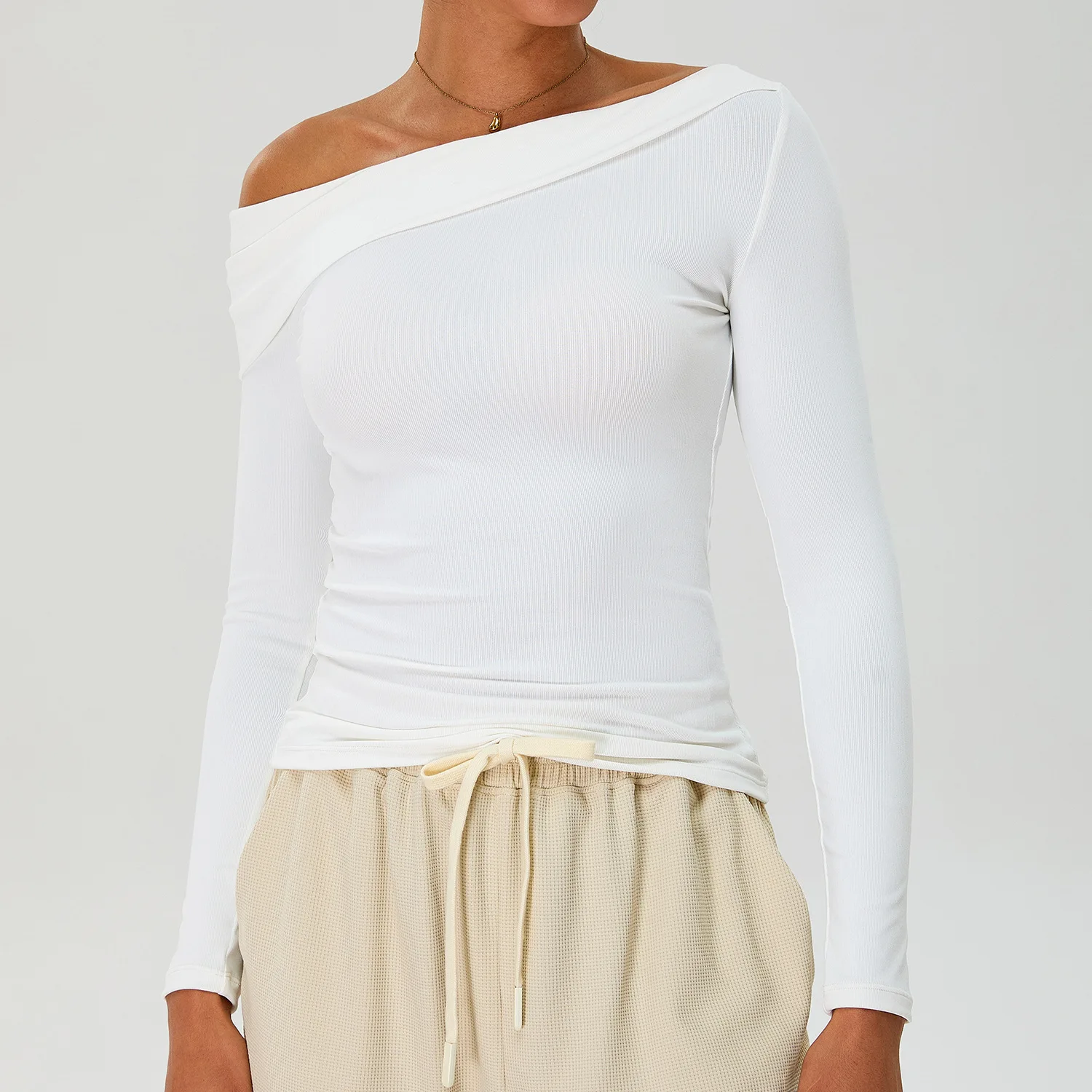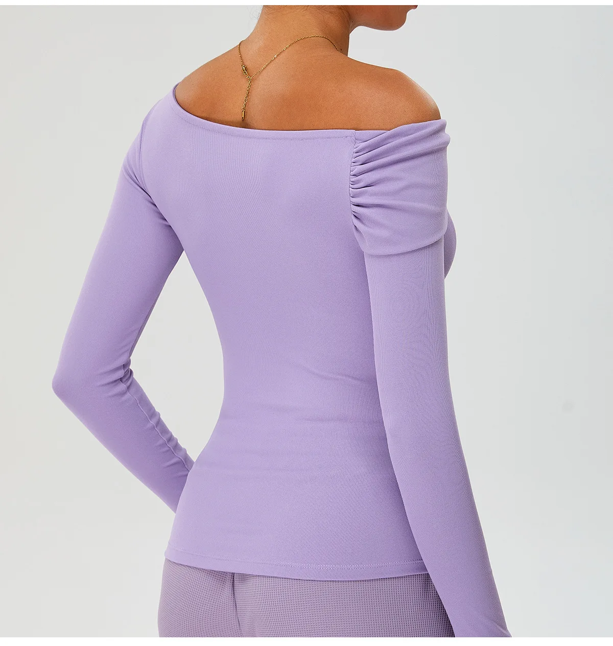 Off Shoulder Long Sleeve Athletic Ribbed Quick Dry Workout No Padding Custom Logo Gym Sports Fitness Yoga Top