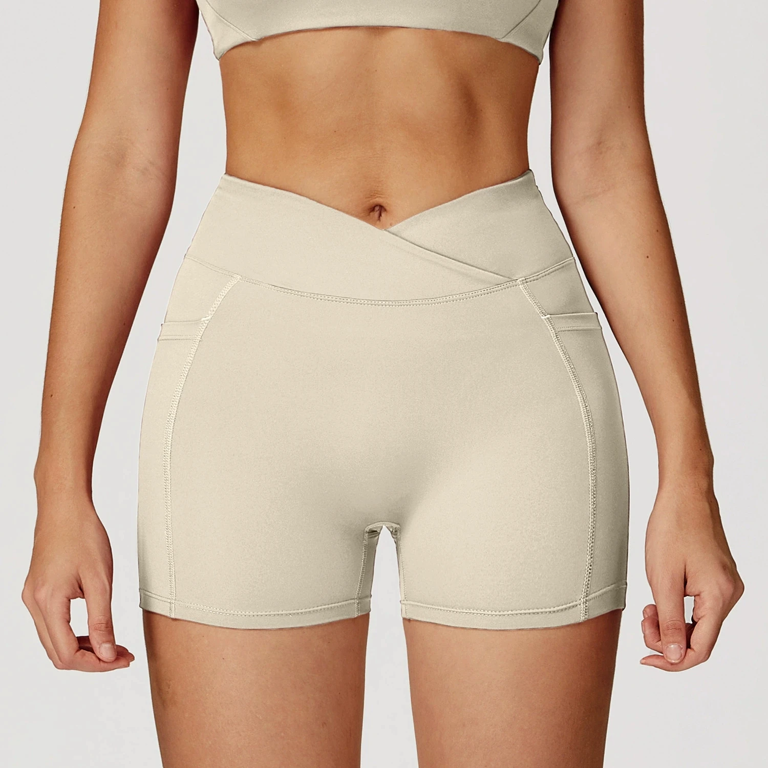 New Arrival High Waist Plus Size Training Shorts Running Workout Athletic Ladies Shorts Women Sport Shorts With Side Pocket