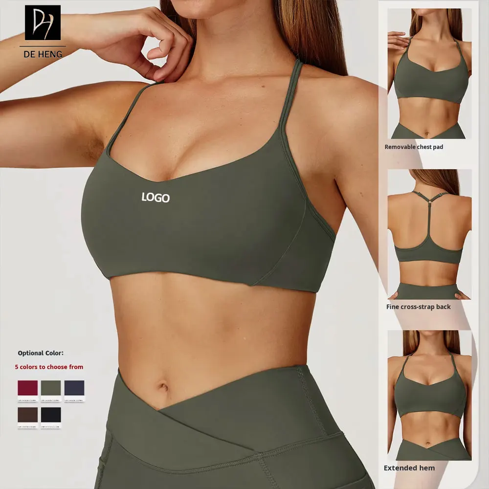 High Quality High Support Naked-Feel Yoga Bra Running Y-Shaped Cross Backless Design Adjustable Sports Bra for Women