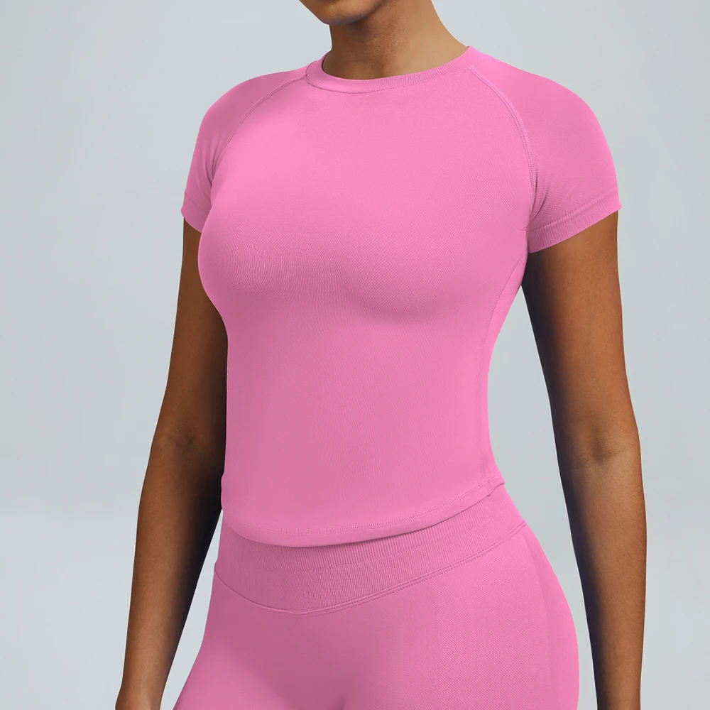 YISHENHON 2026 New Design Quick Drying Casual Tight Short Sleeve Yoga Wear Women High Intensity Running Sports Fitness T-shirt
